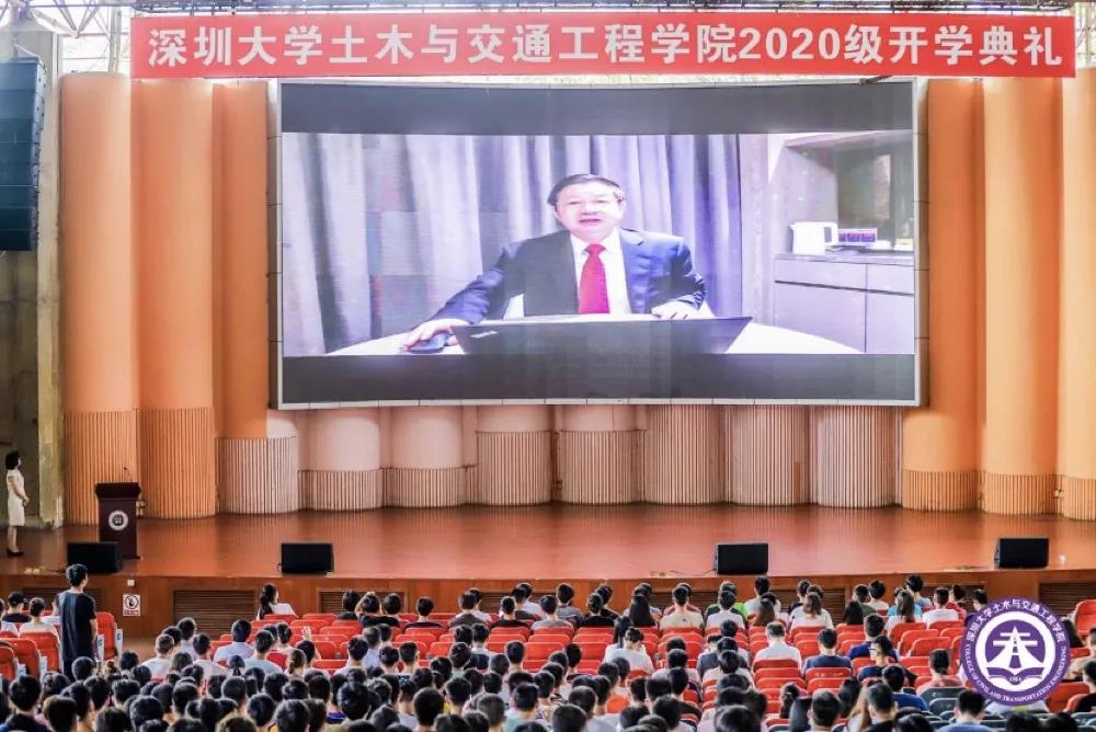 2020年9月19日下午15:00分,土木与交通工程学院2020级开学典礼在深圳大学演会中心隆重举行。出席开学典礼的领导包括土木与交通工程学院党委书记李伟文、执行院长龙武剑、副院长隋莉莉、副院长杨磊、党委副书记陈碧霞、院长助理包小华。参加典礼的还包括学院各专业系正副主任和2020级本科生班主任,以及土木与交通工程学院2020级的全体本硕博新生。典礼由党委副书记陈碧霞主持。