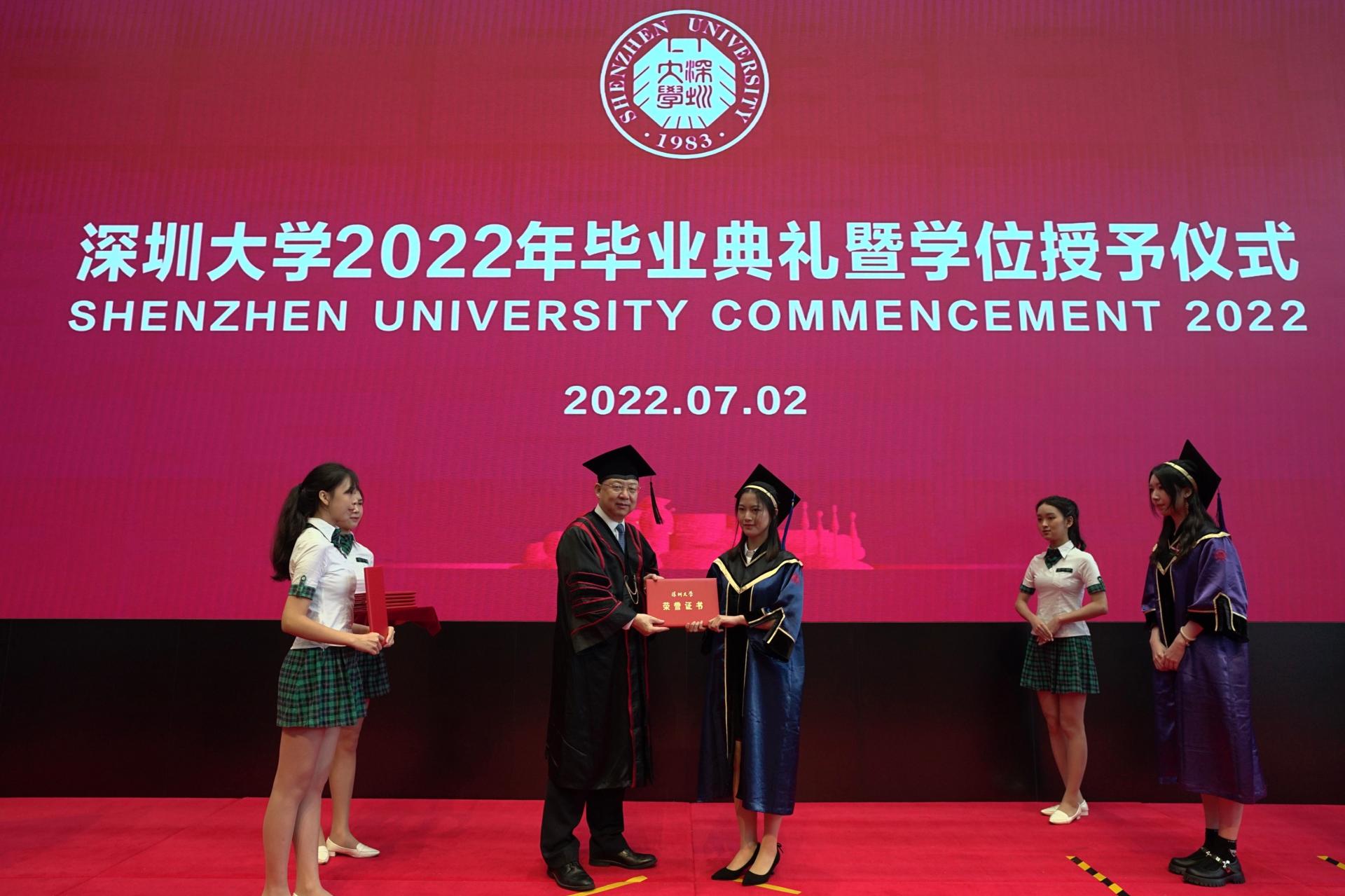 7月2日深圳大学2022年毕业典礼在校友广场等地以“线上+线下”、“主会场+分会场”相结合形式的举行,校党委书记李清泉、校长毛军发等校领导亲临毕业典礼现场,我院院长陈湘生院士也亲自到场参会。我院江琳、许少鑫和刘细妙三位同学作为学生代表在毕业典礼现场参加了此次毕业典礼和学位授予仪式。