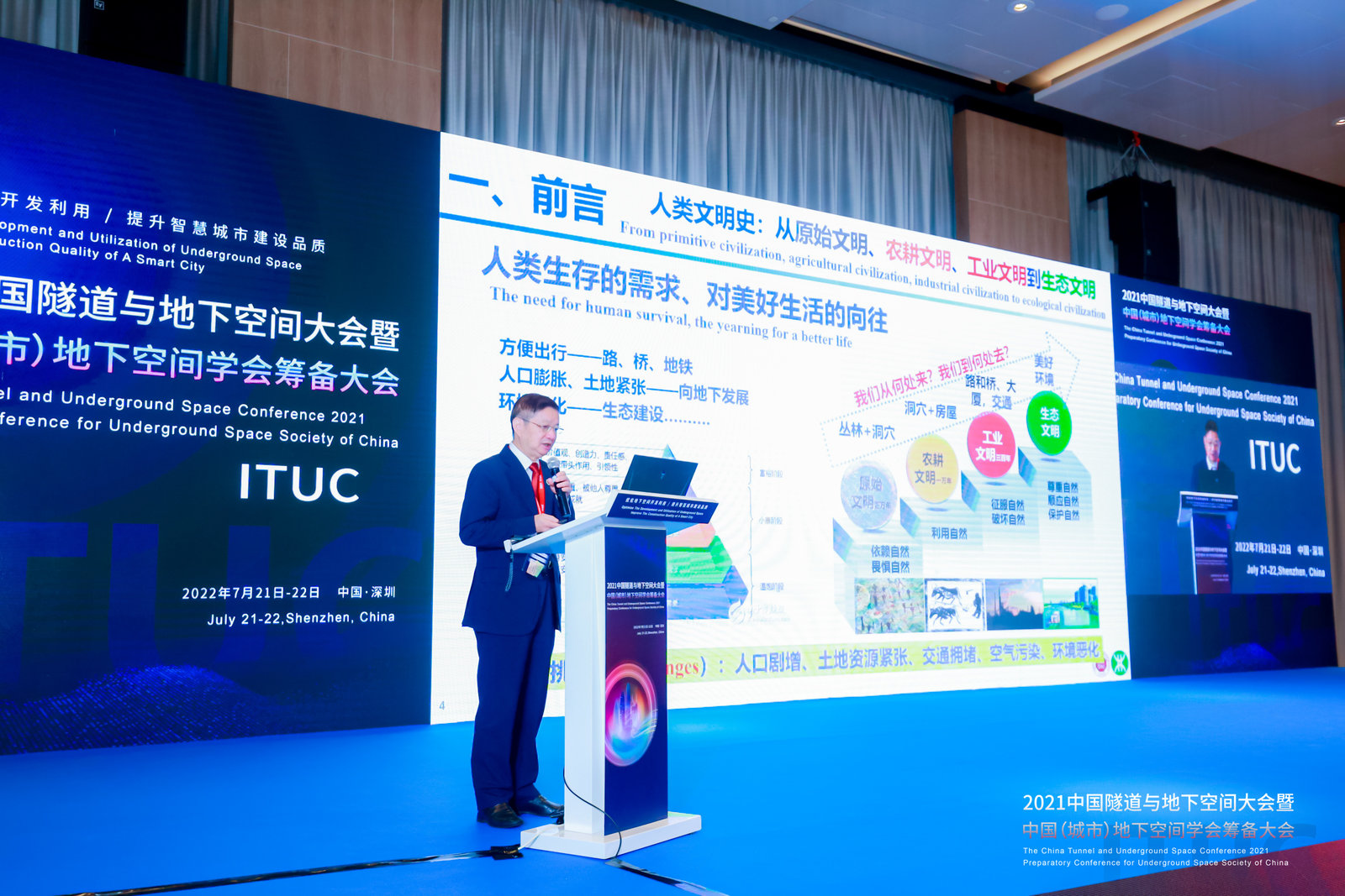 2021中国隧道与地下空间大会暨中国(城市)地下空间学会筹备大会于2022年7月21—22日在深圳成功举办,本次会议由深圳大学、深圳市土木建筑学会、中铁第四勘察设计院集团有限公司、中国电建集团华东勘测设计研究院有限公司主办,深圳中国工程院院士活动基地、深圳市中腾建业建设投资有限公司承办,深圳大学土木与交通工程学院、深圳大学未来地下城市研究院等36家单位协办,本次大会的主题是“优化地下空间开发利用/提升智慧城市建设品质”。