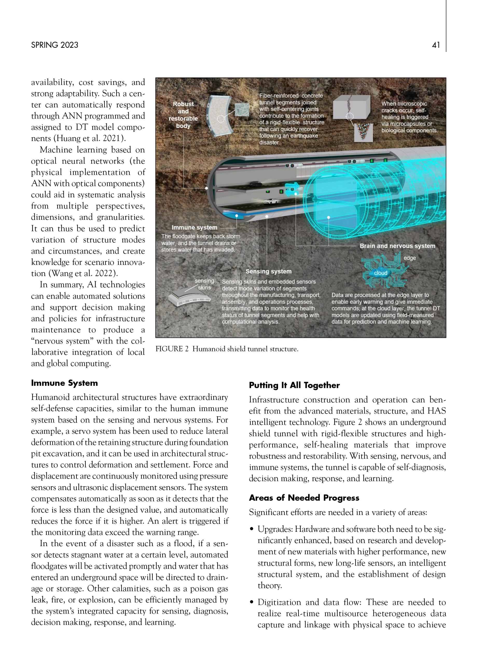 近日,依托国家自然科学基金重大项目、重点项目以及深圳市高层次人才团队项目等,陈湘生院士团队在最新出版的美国国家工程院院刊《The Bridge》春季期刊发表最新研究进展《Developing Humanoid Architectural Structures for a Resilient City》(韧性城市类人建筑结构),提出了未来建筑结构新概念,即新材料-结构-建筑智能化与全域感知预测预警协同的韧性基础设施。