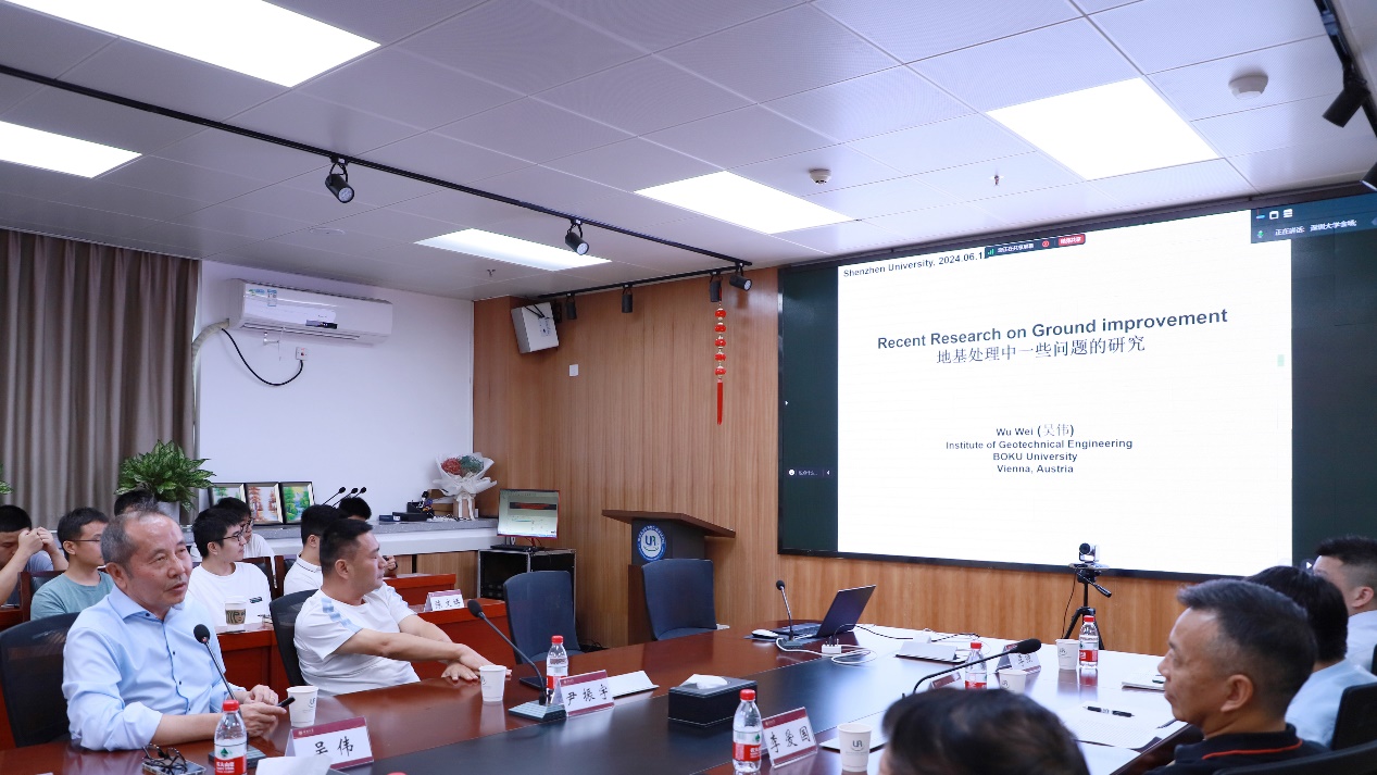 2024年6月12日下午,维也纳自然资源与生命科学大学吴伟教授、香港理工大学尹振宇教授莅临我院举行学术交流会。我院及未来地下城市研究院院长陈湘生院士会见来宾并主持会议,未来地下城市研究院副院长苏栋教授、王树英教授、总工程师付艳斌教授及20余名深大师生现场参会,30余名业内学者线上参会,此次交流会在粤海校区(南区)致理楼1007会议室举办。