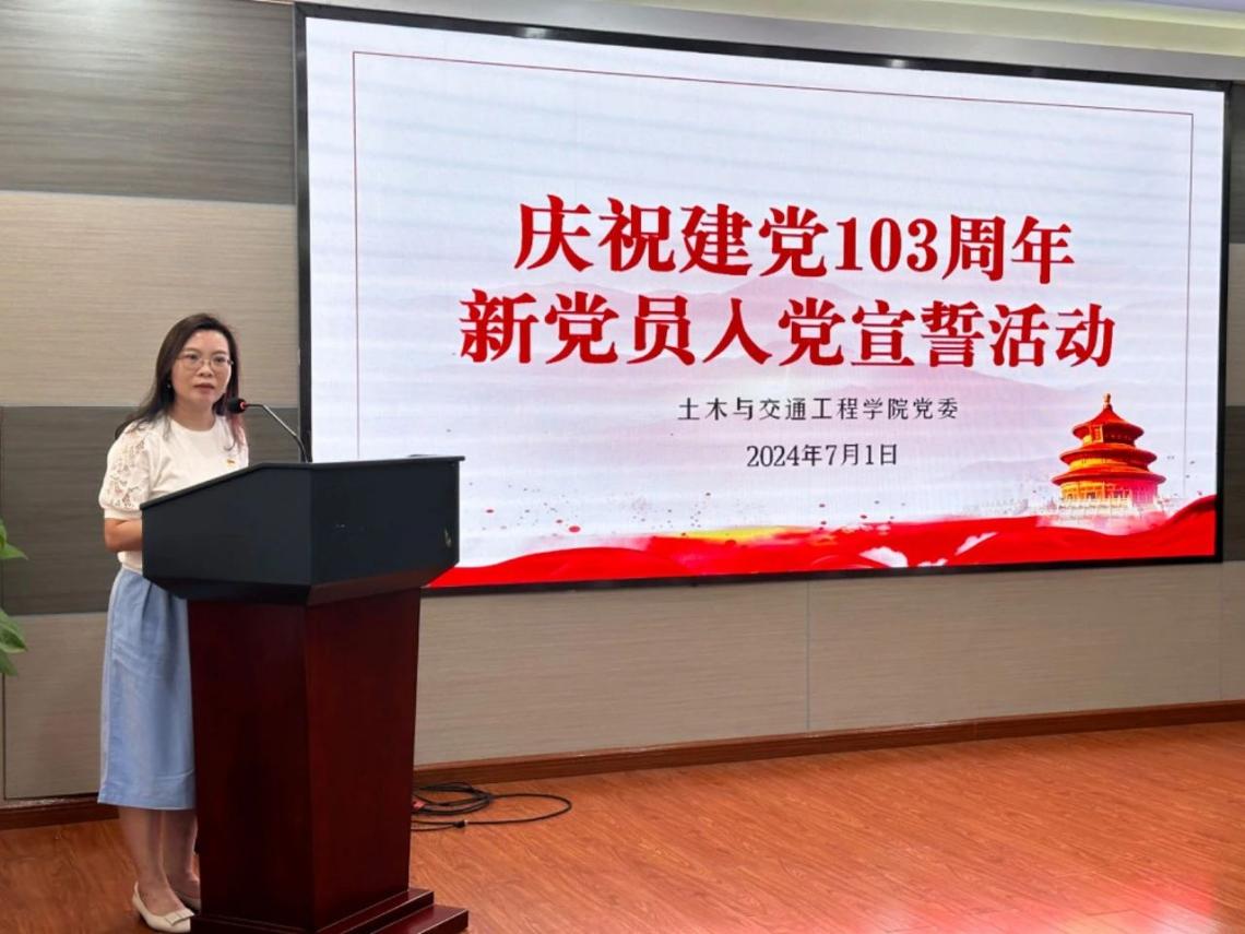 2024年7月1日,中国共产党迎来成立103周年纪念日。千秋伟业,薪火相传;百年大党,风华正茂。在这个特殊而庄严的日子里,我院党委举办了建党103周年暨新党员入党宣誓活动,本次活动由党委副书记陈碧霞主持。