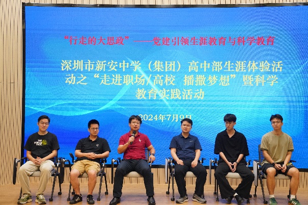 最后,师生们回到致工楼A431报告厅,开展了生涯人物访谈活动。在这一环节中,学生们向深圳大学的师生代表提出了许多问题。师生代表就大学生活、专业选择及未来发展等问题,给出了详细而真诚的解答。