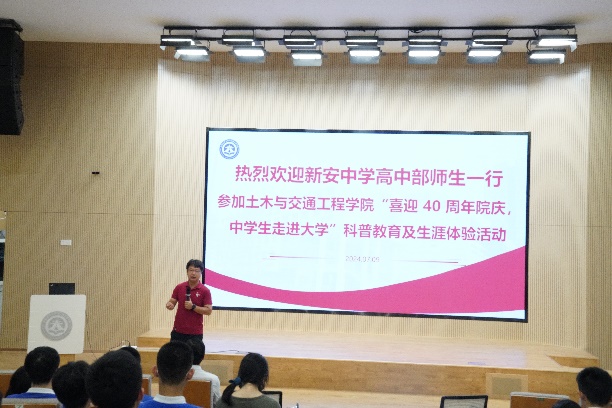 7月9日及11日上午9时,我院副院长杨磊、院长助理梅柳、副系主任熊琛在学院门口迎接深圳市新安中学高中部及肇庆市第一中学高一级摘星班全体师生,并合影留念。在致工楼A431报告厅,杨磊副院长以饱含热情的致辞欢迎远道而来的师生们。院长助理梅柳从深大的发展速度与质量、学科专业、培养特色、就业前景、校园生活以及往年录取情况等多个方面,对深圳大学进行了多维度的介绍,并勉励学生在这个科技发展日新月异的时代,要敢于创新,勇于不同,以梦为马,开创未来。随后,副系主任熊琛以《地震与防震减灾科普教育》为题,通过真实的地震案例和振动台实验视频,详细讲解了地震的成因、影响及防震减灾措施,为同学们带来了一场生动的科普讲座。