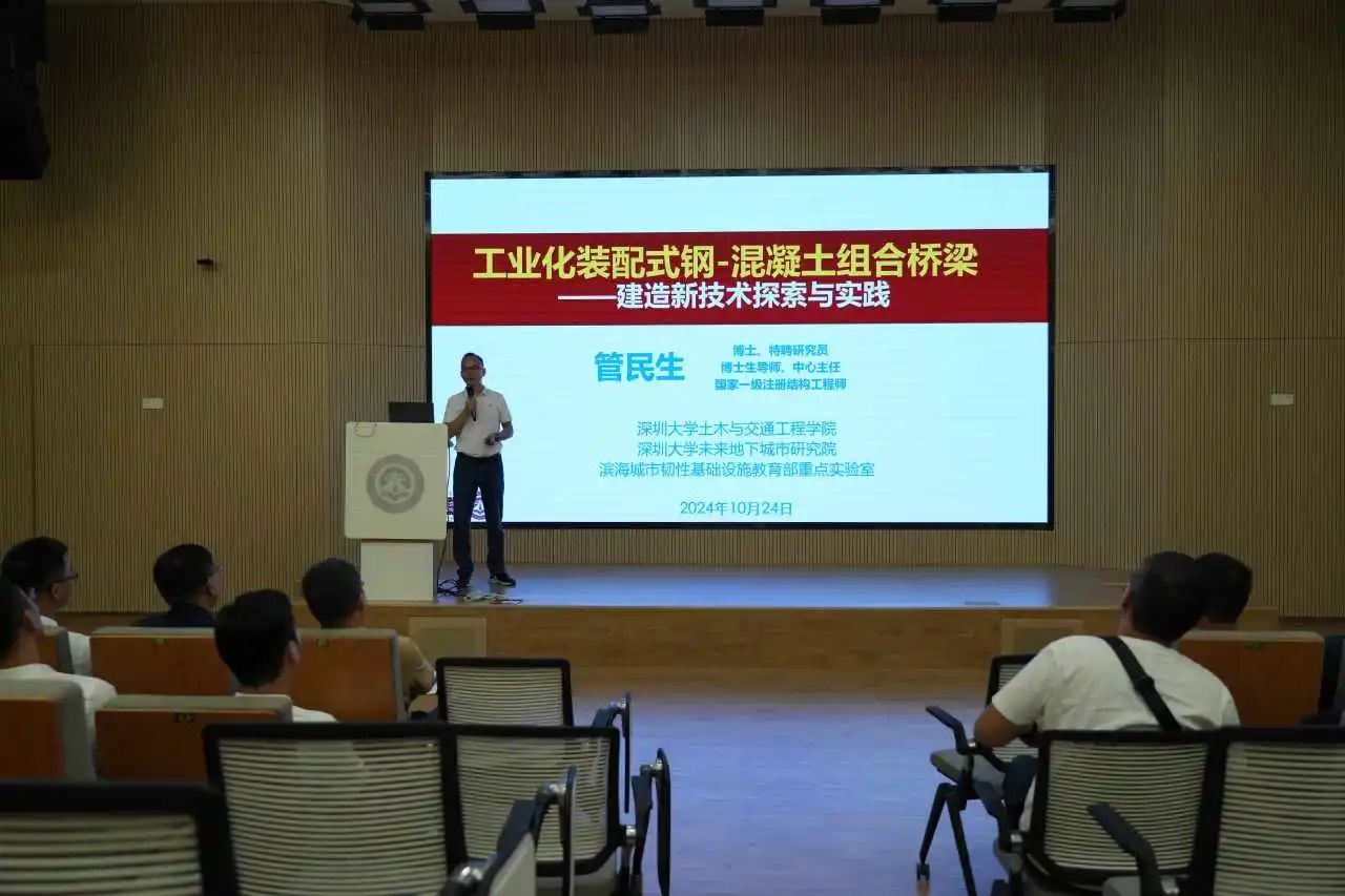 管民生副教授为海丰县住房和城乡建设局一行进行了主题为《工业化装配式钢-混凝土组合桥梁——建造新技术探索与实践》的培训,全面介绍了装配式钢-混凝土组合桥梁的关键技术以及应用场景等。
