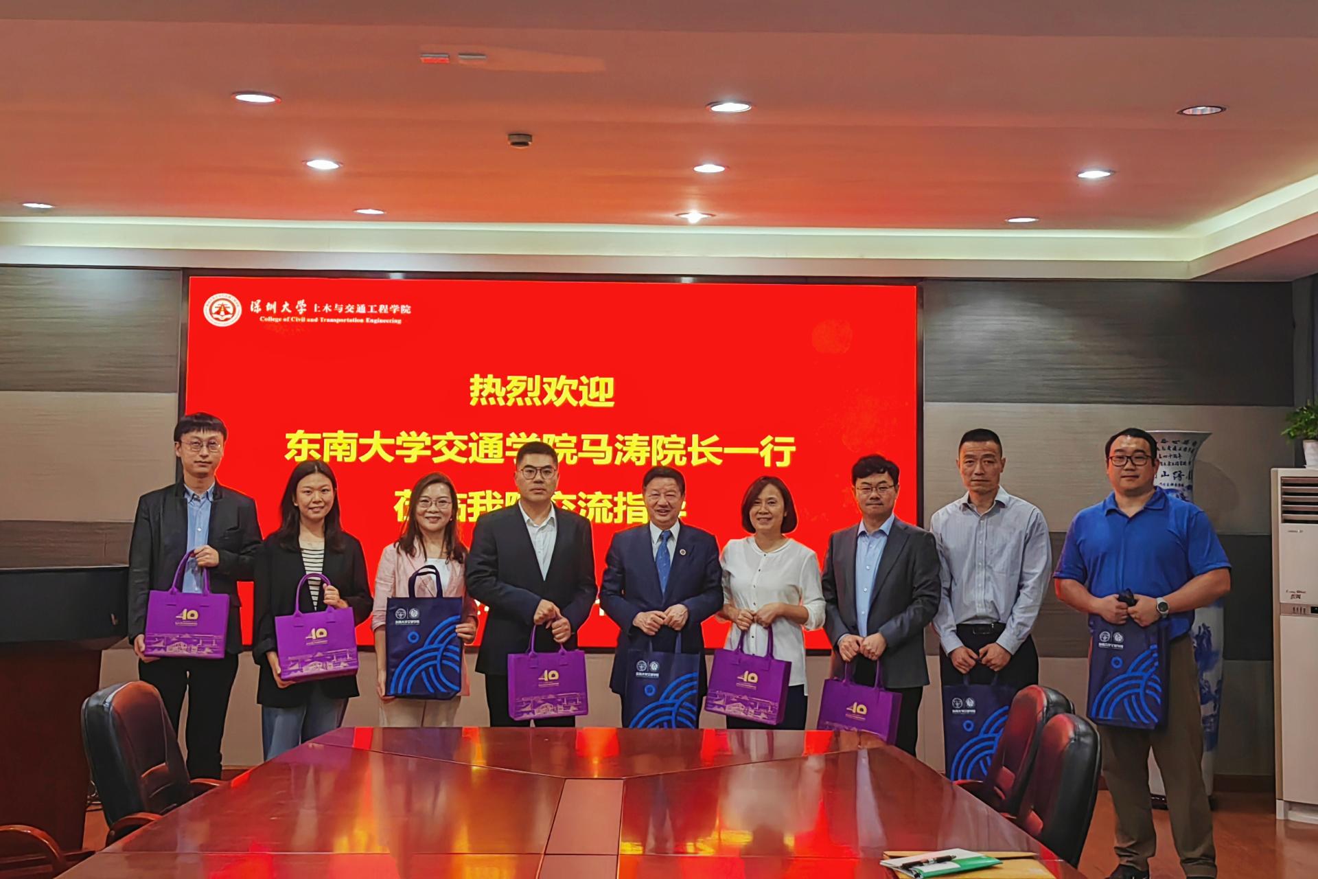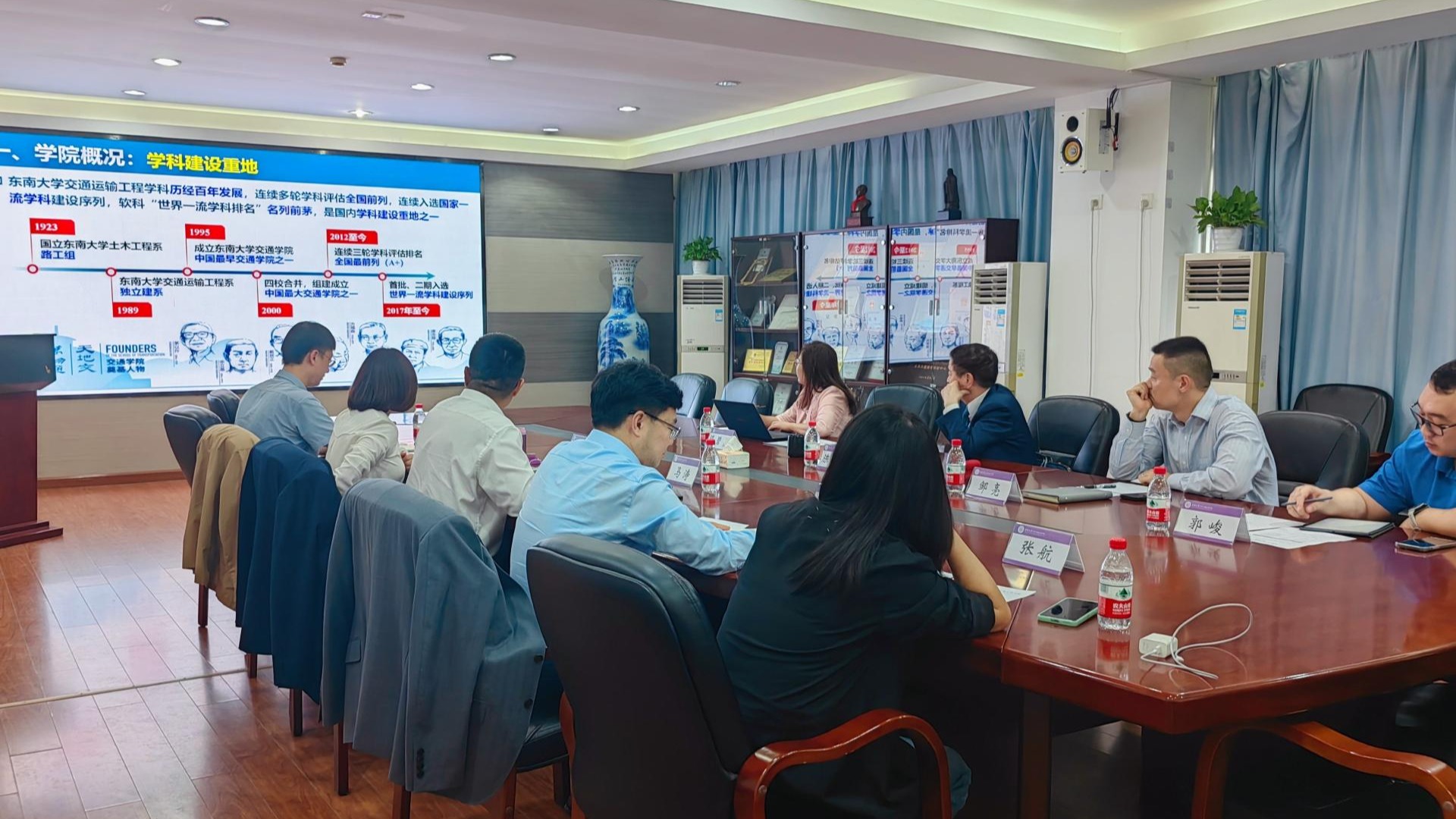 2024年11月12日下午,东南大学交通学院党委书记陈怡、院长马涛一行来我院访问交流。我院院长陈湘生院士会见来宾并主持会议,副院长邹亮、党委副书记陈碧霞、副院长郭峻参加会议,此次交流会在粤海校区(南区)致工楼B401会议室召开。