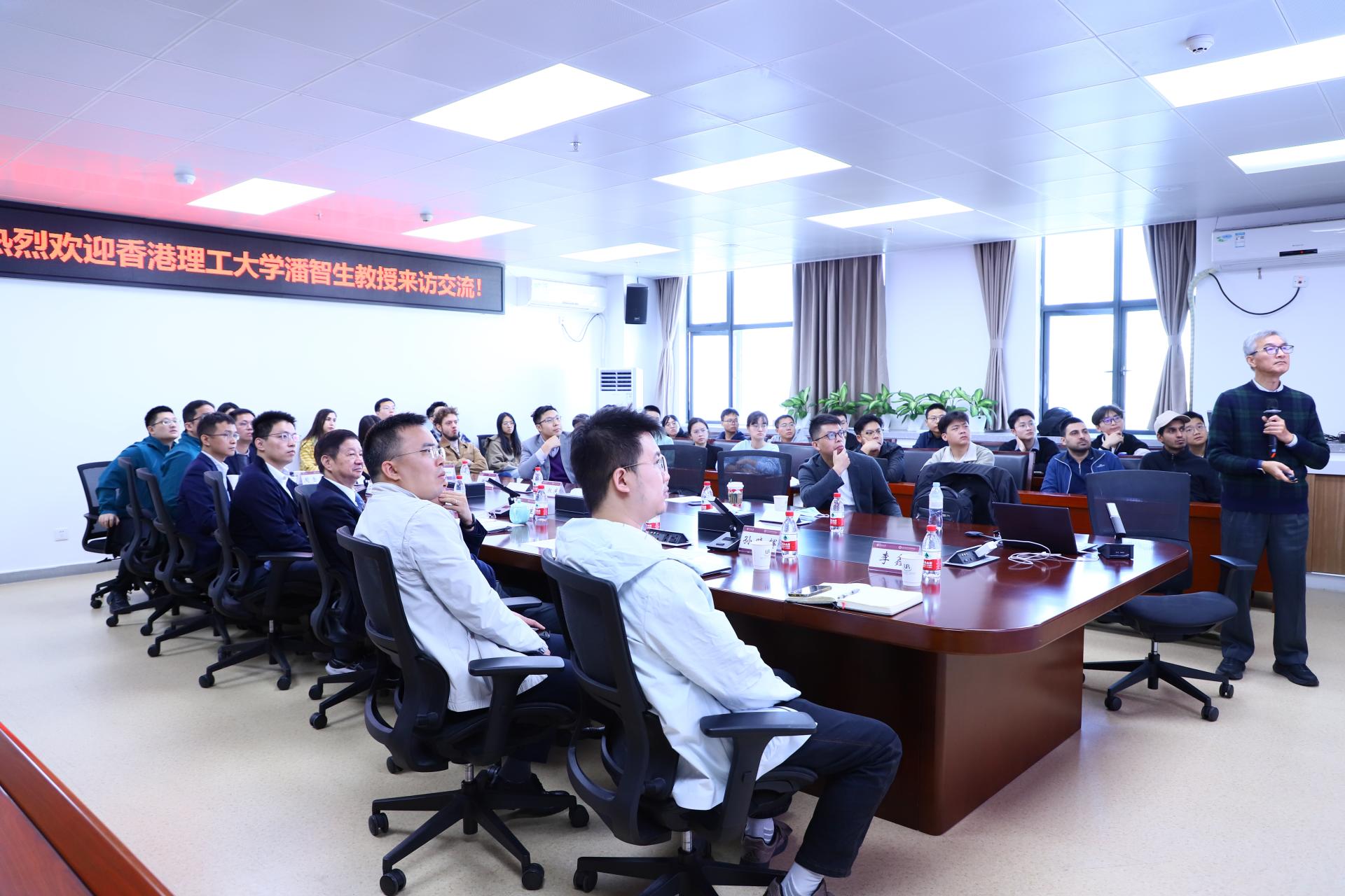 报告概述了潘教授在低碳胶凝材料与高强轻质混凝土的研发、废弃混凝土碳化技术与机理、3D混凝土打印技术等方面的最新研究成果。在讨论环节,潘教授和与会师生就香港明日大屿可持续填海工艺、混凝土高效碳化工法、碳化材料耐久性和生命周期碳排放评估等方面展开深入交流。