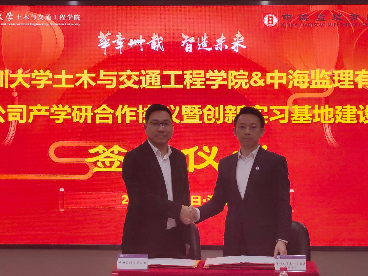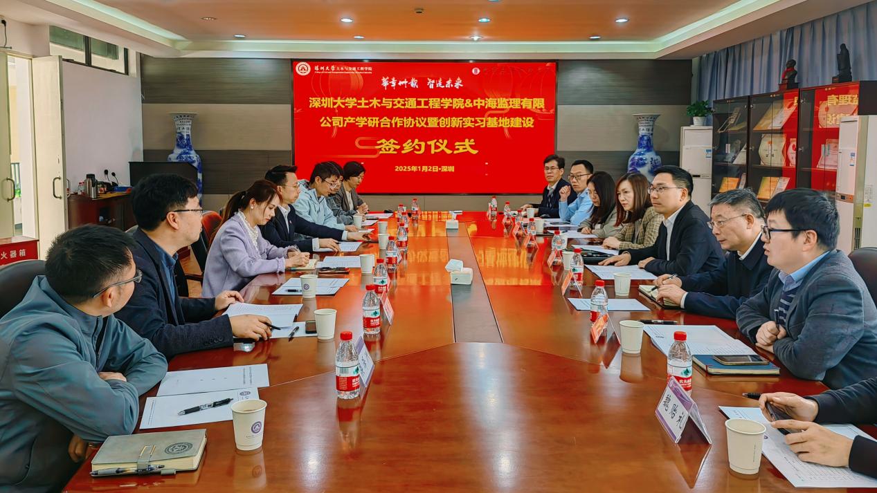 2025年1月2日下午,我院与中海监理有限公司产学研战略合作协议签约暨创新实习基地揭牌仪式在深圳大学粤海校区致工楼B401会议室顺利举行。