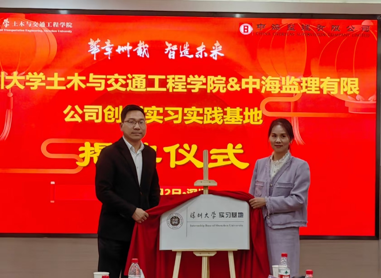 我院左英姿书记与中海监理有限公司刘志刚总经理共同揭牌了深圳大学实习基地。