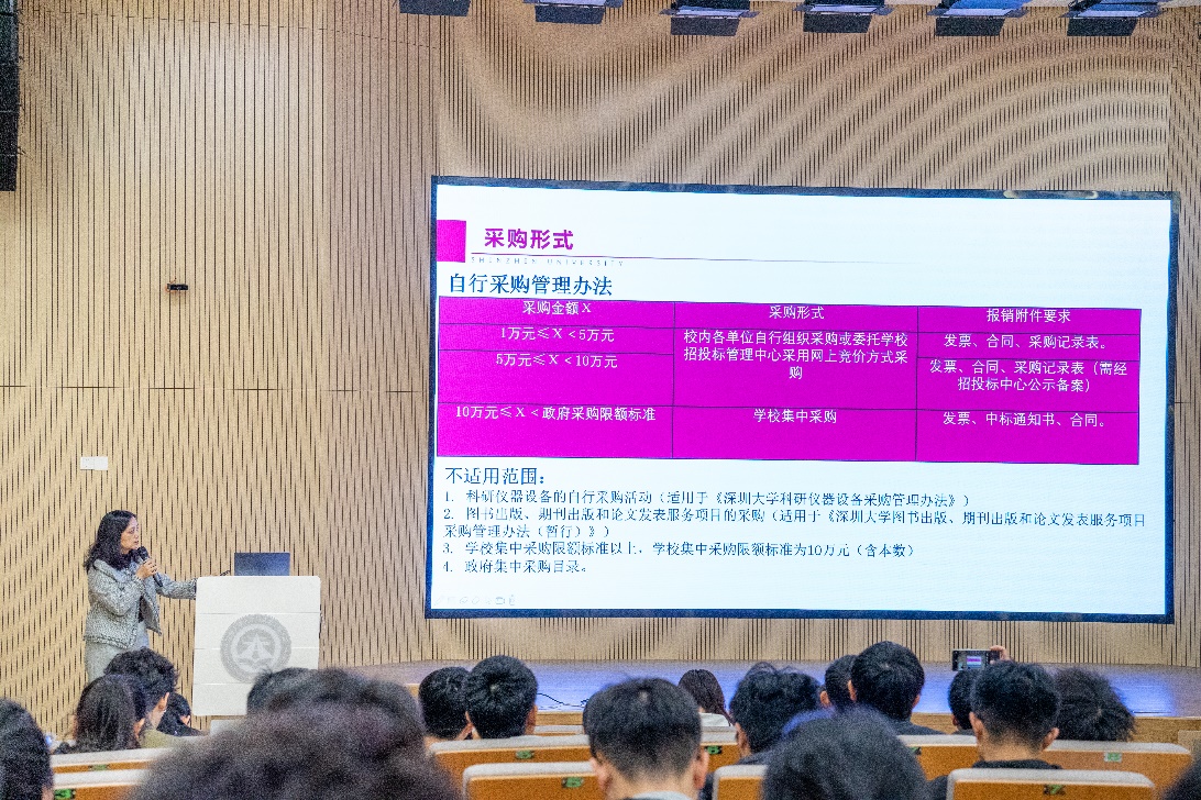 培训针对高水平三期建设经费和教职工科研经费使用进行了明确的说明和指导,确保经费的合理使用和规范管理。除此之外,培训对图书出版、项目采购、科研仪器设备采购以及政府集中采购等不同采购形式的适用范围、采购金额区间、采购方式和报销附件要求进行了全面的阐述,为后续在采购过程中选择合适的采购形式和准备相应的报销资料提供了明确的指导。