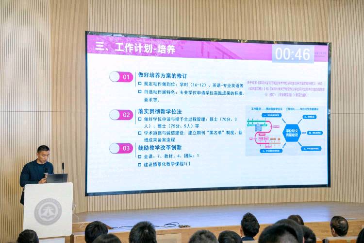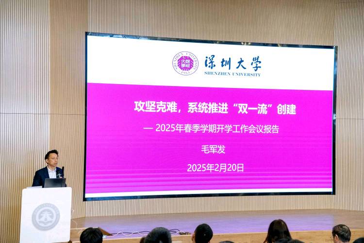 会议伊始,党委书记左英姿、执行院长龙武剑传达了学校新学期工作会议精神。左书记传达了李清泉书记在学校新学期工作会议上的精神,强调要强化党建与廉政建设,推进"一融双高",持续完善合规体系,不断创新教师聘任机制,聚焦人工智能发展新趋势,优化学科布局,以目标导向布局“十五五”规划,谋划学校事业高质量发展。执行院长龙武剑传达了毛军发校长在学校新学期工作会议上的精神,指出2025年是学校实现“十四五”规划发展目标、冲刺入选“双一流”建设大学的“平津战役”之年。他动员全院全体教职工务必不忘初心,牢记使命,扛起冲锋大旗,为深圳大学建设成为世界一流综合性大学贡献自己的力量。