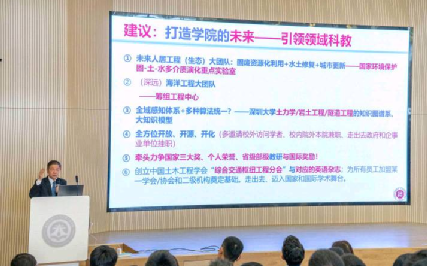 会议最后,我院院长陈湘生院士总结发言。陈院士从大土木工程发展谈起,指出土木工程已迈入信息化、数智化、智能化的门槛,数智土木工程是一个巨系统,应从系统观、全局观来重新思考其中的智能建造。陈院士特别强调,要大力推进人才培养模式的改革与创新,要勇于自我革命,突破传统教学模式的桎梏,通过多维度、立体化的方式培育学生,从以传播知识为主转向哲学思辨、向善尚慈的特色教学,以新模式培养造就具有家国情怀、科学精神、人文情怀、哲学思维、创新能力、国际视野、多学科交叉背景的“未来大土木+”智慧复合型人才——卓越工程师、管理者和科学家!