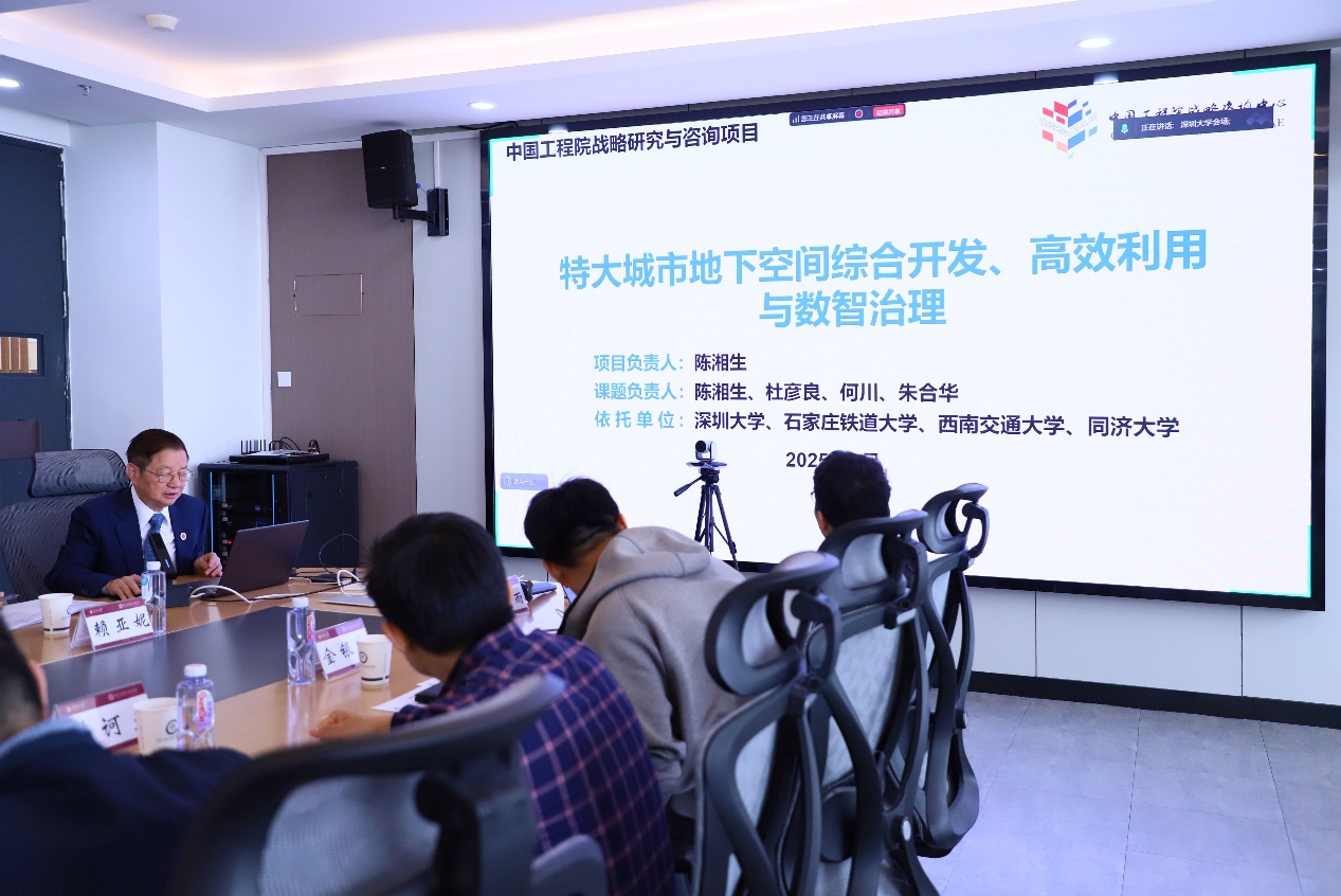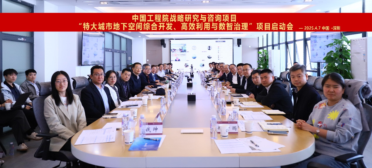 2025年4月7日,中国工程院战略研究与咨询项目“特大城市地下空间综合开发、高效利用与数智治理”项目启动会在深圳大学顺利召开。项目由深圳大学牵头,深圳大学土木与交通工程学院、未来地下城市研究院院长陈湘生院士担任项目负责人,联合石家庄铁道大学、西南交通大学、同济大学、陆军工程大学、中国工程院战略咨询中心、华中农业大学、中规院深圳分院、中铁工程装备集团有限公司、中铁第四勘察设计院集团有限公司等九家优势单位开展协同攻关。