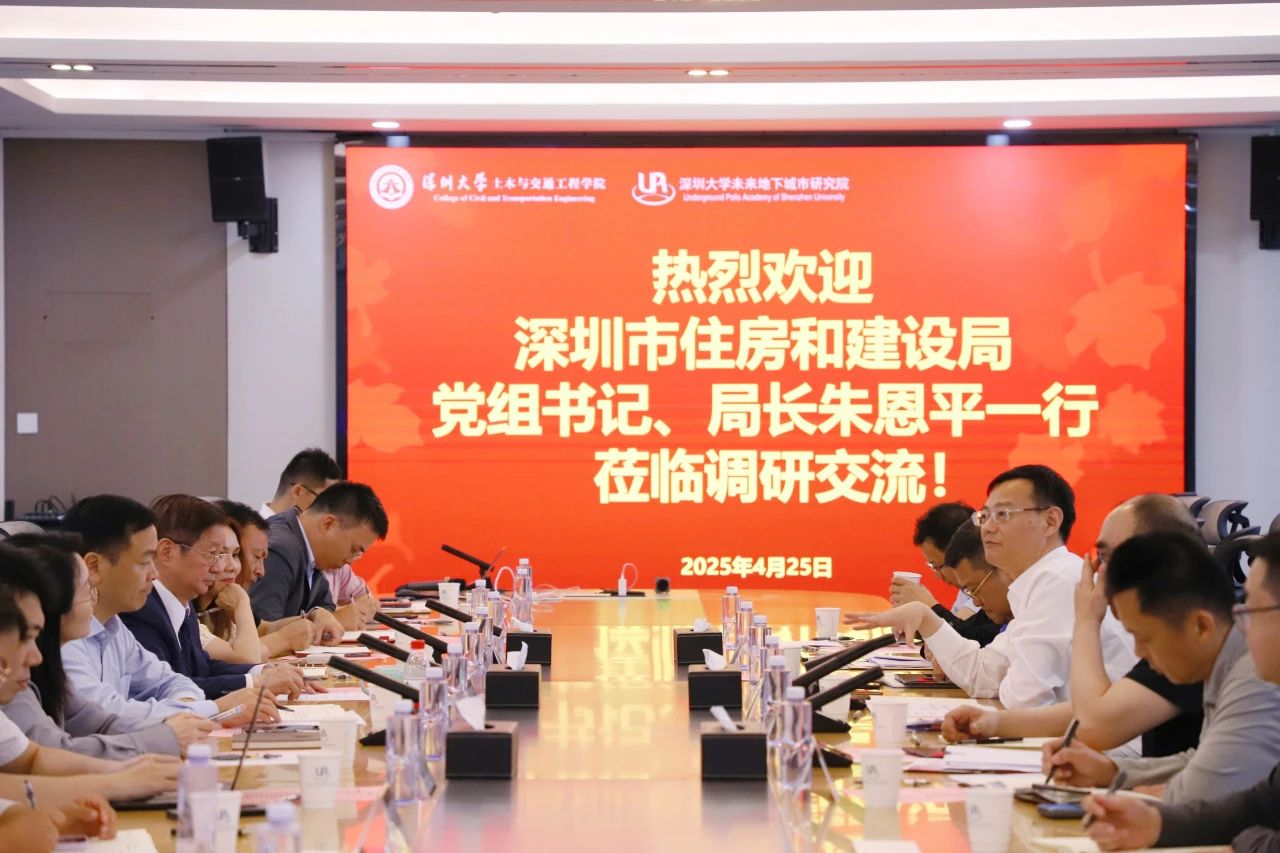 2025年4月25日下午,深圳市住房和建设局党组书记、局长朱恩平一行莅临我院开展调研交流。深圳大学党委副书记吴报水、我院及未来地下城市研究院院长陈湘生院士、人力资源部主任高颖、我院党委书记左英姿以及相关专业教师参加此次座谈交流会,本次会议在粤海校区(南区)致理楼905会议室开展。
