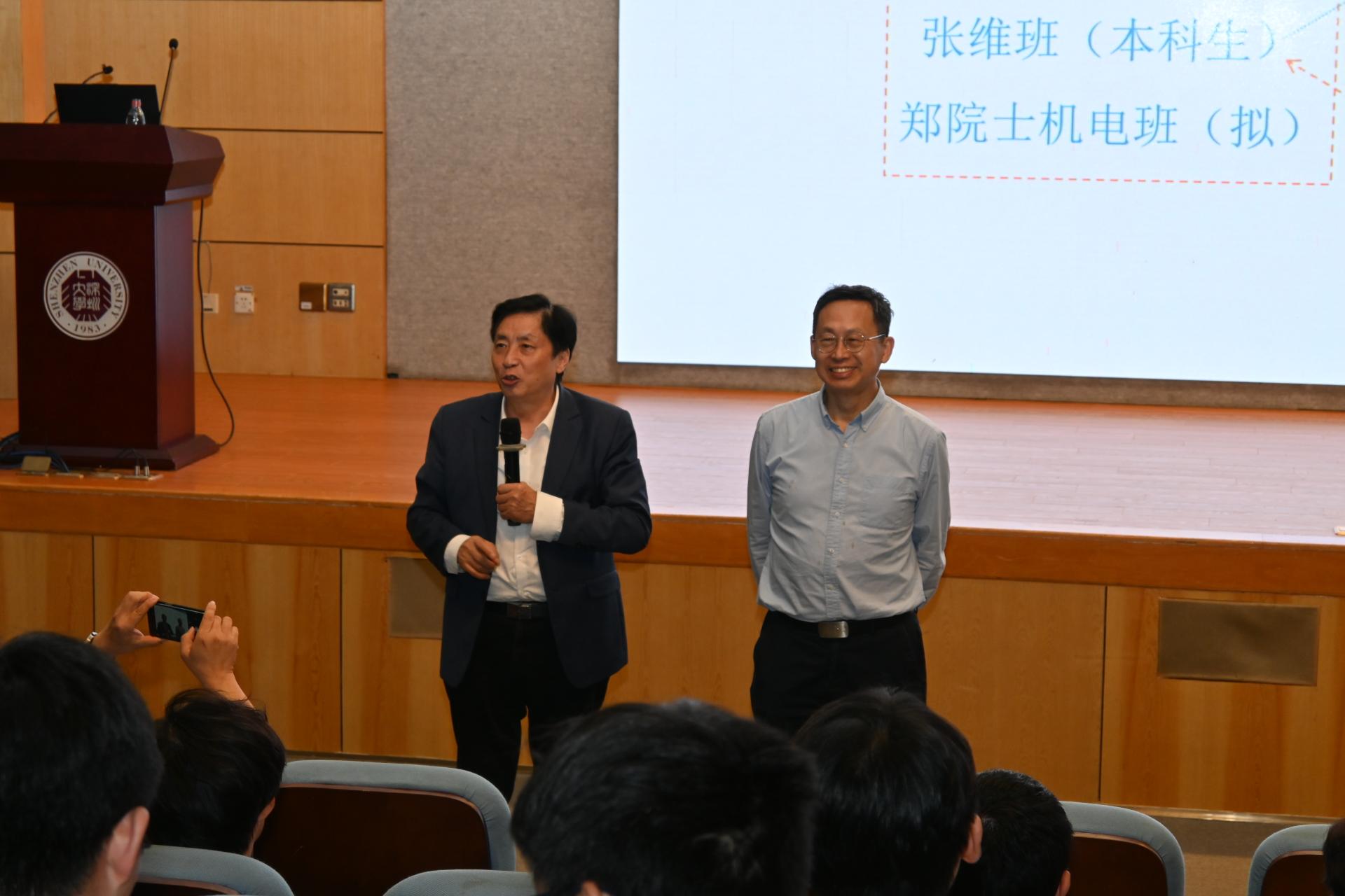 2025年5月7日下午,我院土木工程(数学力学创新班)第一次班会在深圳大学科技楼1号报告厅成功举行。本次班会参会人员包括数学力学创新班班主任谢和平院士、首席科学家郑泉水院士、深圳大学及零一学院导师团、我院24级数学力学创新班本科同学以及24、25级教育部“储才”专项博士研究生等。学校教务部、宣传部、招生办公室的领导和老师也出席了本次班会。