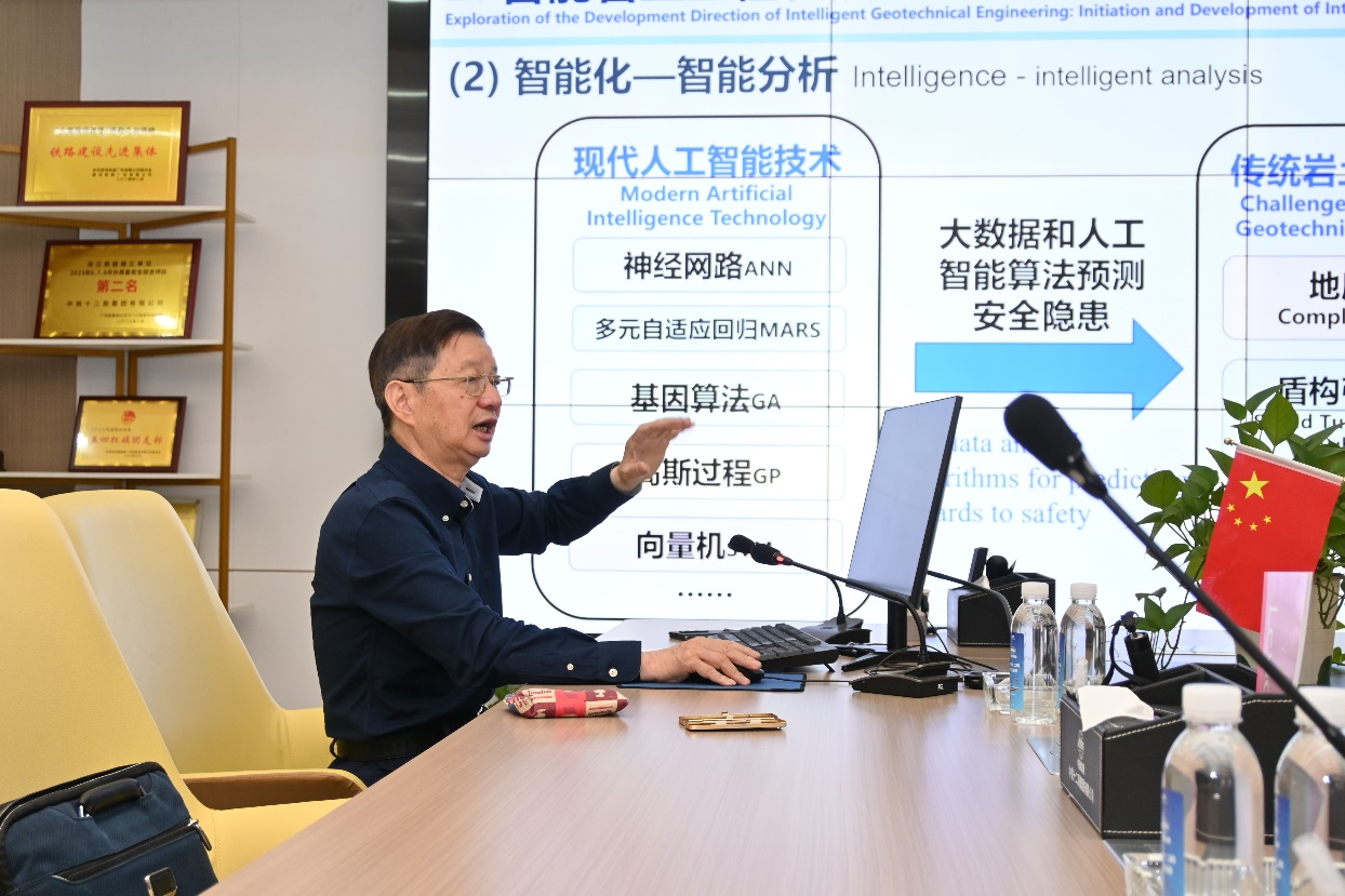 在项目现场,深圳大学陈湘生院士即席讲授《从智能岩土工程探索到数智土木工程的思考》。从土木工程的三次飞跃谈起,陈院士展望了大数据驱动、人工智能赋能的未来土木工程新图景,并寄语学生:“未来属于能够用知识解决复杂问题的人。国际工程创新班探索本科高年级“二对一(校内导师+校外导师,慧育一名学生)、一人一策(因人施教、慧育最好的学生自己)”,尝试突破范式。通过数智化情景教学教材创新,以及更多的课堂师生换位与互动,极大压缩课堂教学时数。腾出更多时间辅助学生参与科研、参与工程实践和游学,发现自己的爱好和潜能。培养学生提出问题和敢于质疑的好奇心,尤其是自学能力。从传播知识为主,转向发现问题、质疑索源、主动思考、师生换位互动的哲学思辨教学创新。培养学生敢于直面挑战、持续学习、不断创新和终身学习的习惯。以及耐得住寂寞、守得住热爱的执着品质。