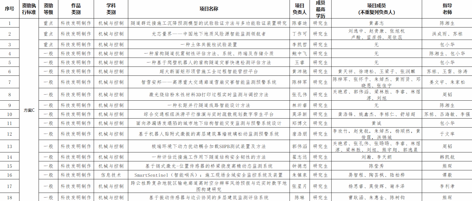 评委们从项目可行性、学术价值等角度出发,进行了专业的提问,并提出了宝贵的指导意见,同时对各项目进行了现场评分。最终,共有18个项目脱颖而出,成功立项并直接推荐至校赛(项目名单见图片9)。