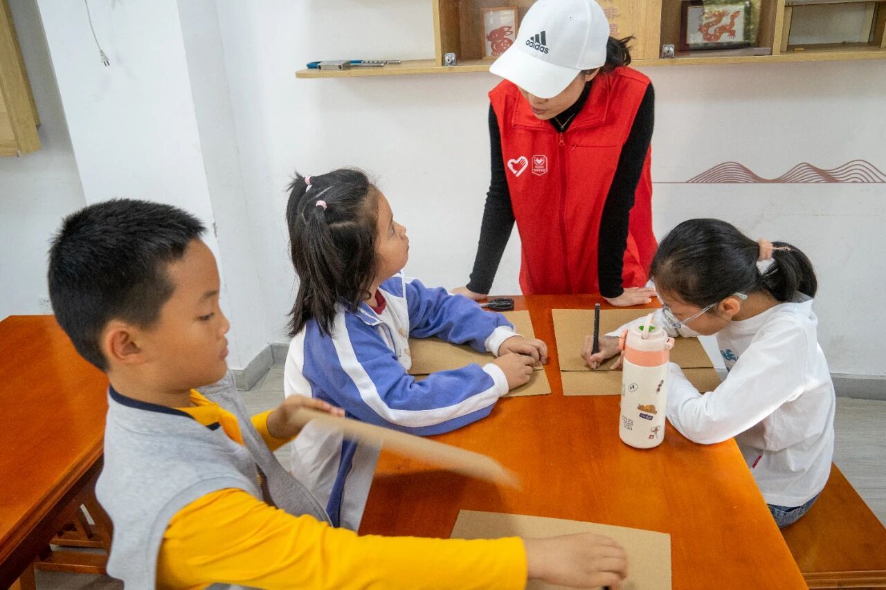 动手实践环节,志愿者们为孩子们分组发放了纸盒、剪刀等材料,要求各组在35分钟内搭建能跨越30cm“小河”、承受2个乒乓球重量的桥梁。过程中,志愿者耐心引导孩子们思考结构加固的方法,同时鼓励他们做好团队分工,在协作中完成创意设计。最后,各组依次展示创作作品并介绍设计思路,志愿者们通过承重测试评选出了“最佳承重奖”“最具创意奖”等特色奖项。志愿者们还特别分享了环保创作的建议,让孩子们切实感受到了土木工程的实用性与创造力。