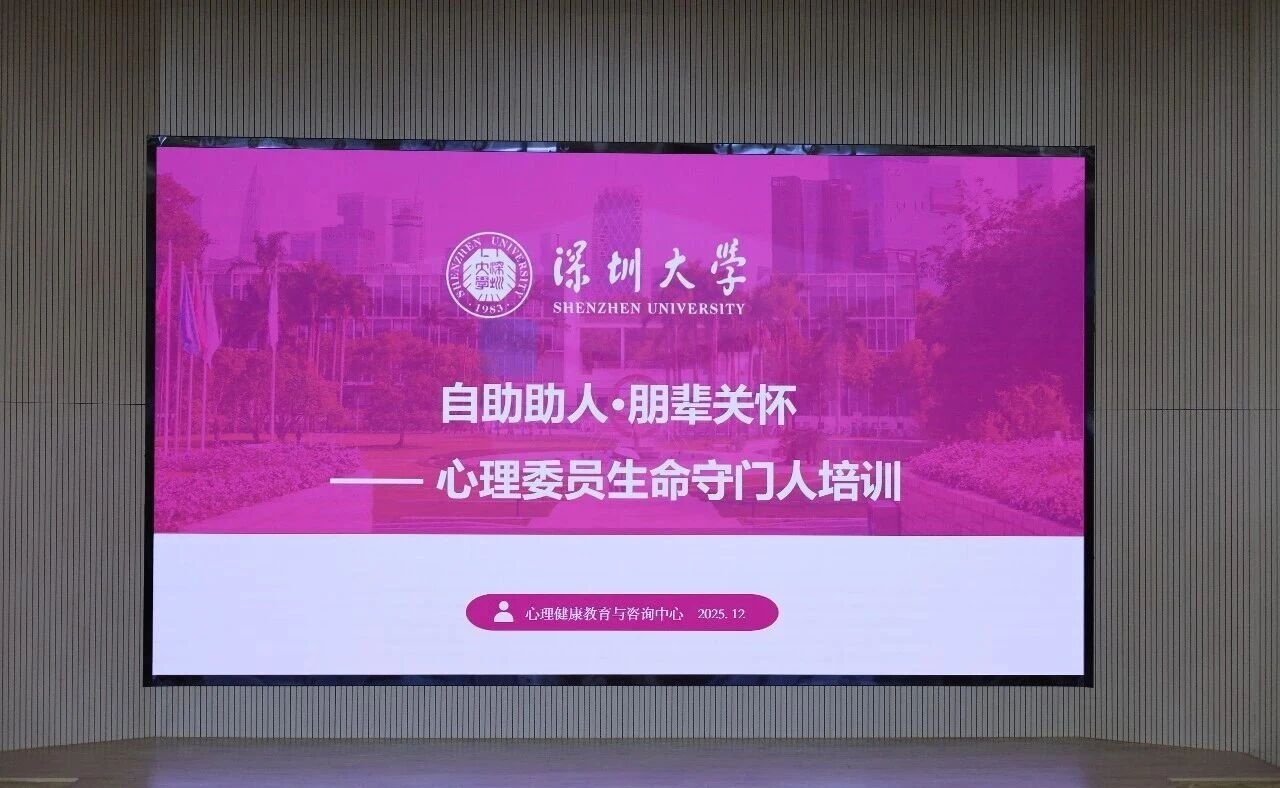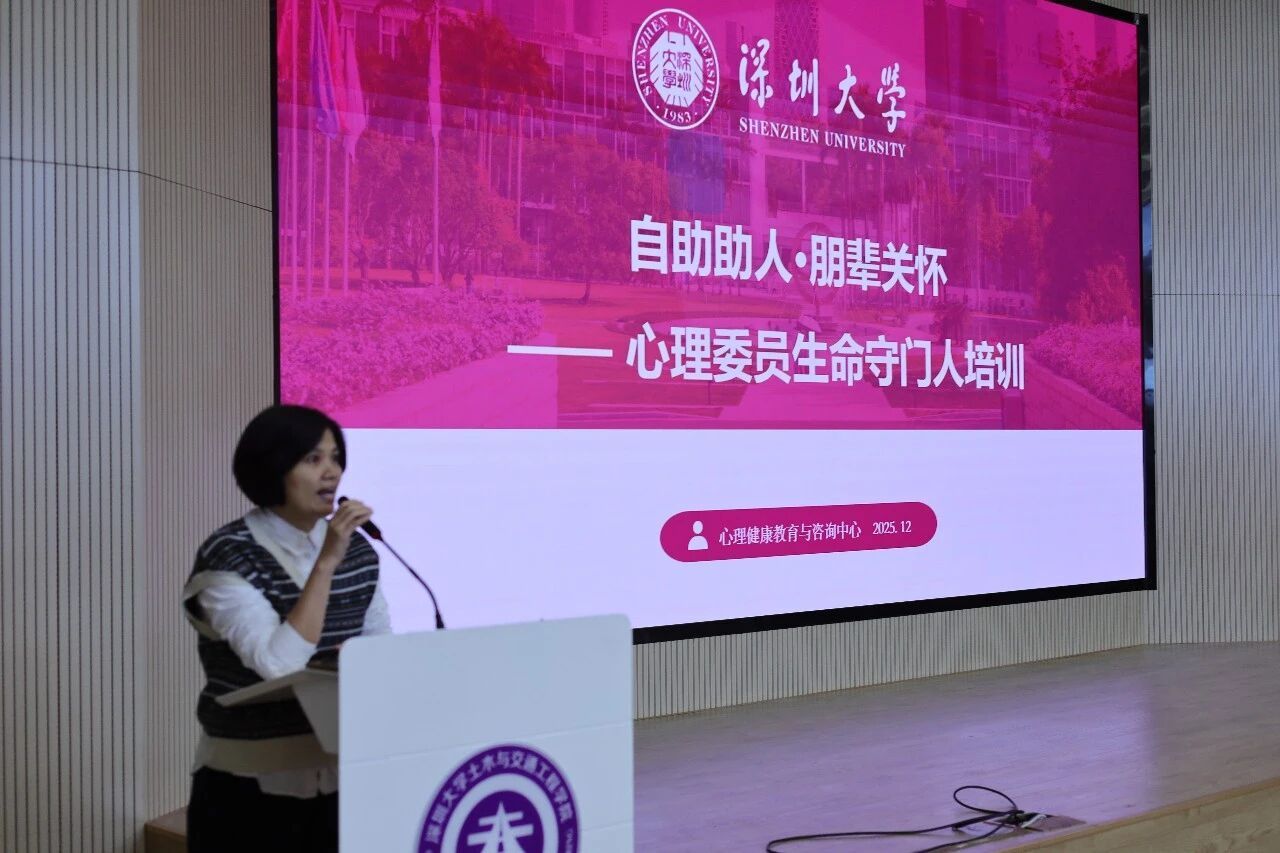 为进一步强化心理委员队伍的使命感与专业能力,12月25日,深圳大学土木与交通工程学院在致工楼A431举办心理委员“生命守门人”专项培训。本次培训由学院学生会心理实践部组织,学校心理健康教育与咨询中心专职教师魏军妹担任主讲人,各年级心理委员参加。