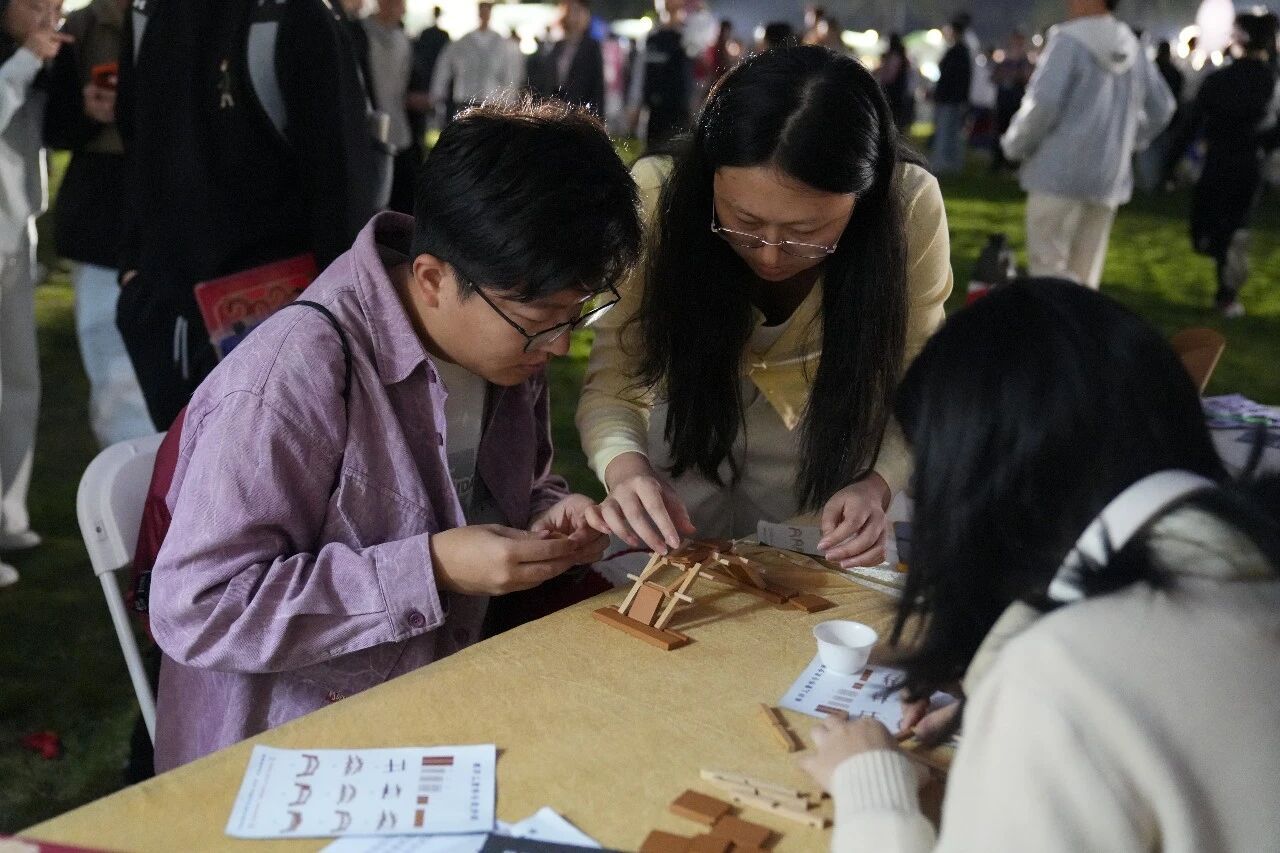 3月3日,我校"大荔出骐骥"元宵市集活动隆重举行。我院紧扣专业特色,在南区大草坪精心打造"榫卯灯宵,智造匠心"主题摊位——以非遗鲁班桥为载体的手工实践游戏,吸引校内师生、亲友及深圳市民广泛参与,成为市集热门打卡点。