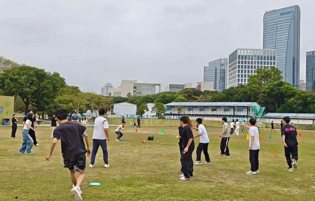 本次活动旨在以体育运动为载体,打破学科与学院壁垒,为不同专业背景的学子搭建一个轻松愉悦的交流平台。活动吸引了来自三个学院的众多同学积极参与。现场,同学们通过创意队名设计、飞盘基础技巧教学与热身互动迅速拉近距离。随后,活动进入了紧张而充满趣味的竞赛环节。赛事精心设置了“飞盘九宫格”、“飞盘躲避赛”、“飞盘投篮”及“专业飞盘赛”四大项目,采用积分制进行。各项目不仅考验了参赛者的个人技巧与体能,更强调了团队的战略协作与默契配合。绿茵场上,飞盘划出一道道弧线,掌声、欢呼声与鼓励声此起彼伏,充分展现了深大学子昂扬向上的精神风貌和“友谊第一,比赛第二”的体育精神。