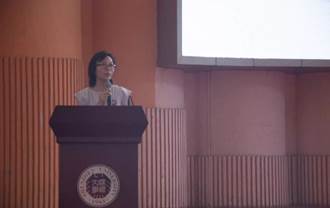 优秀教师代表米旭明老师上台进行发言。米老师在发言中表达了对新生的期盼,同时,鼓舞了在座的各位新生,让各位新生对即将到来的全新的大学生活充满了期待与信心。