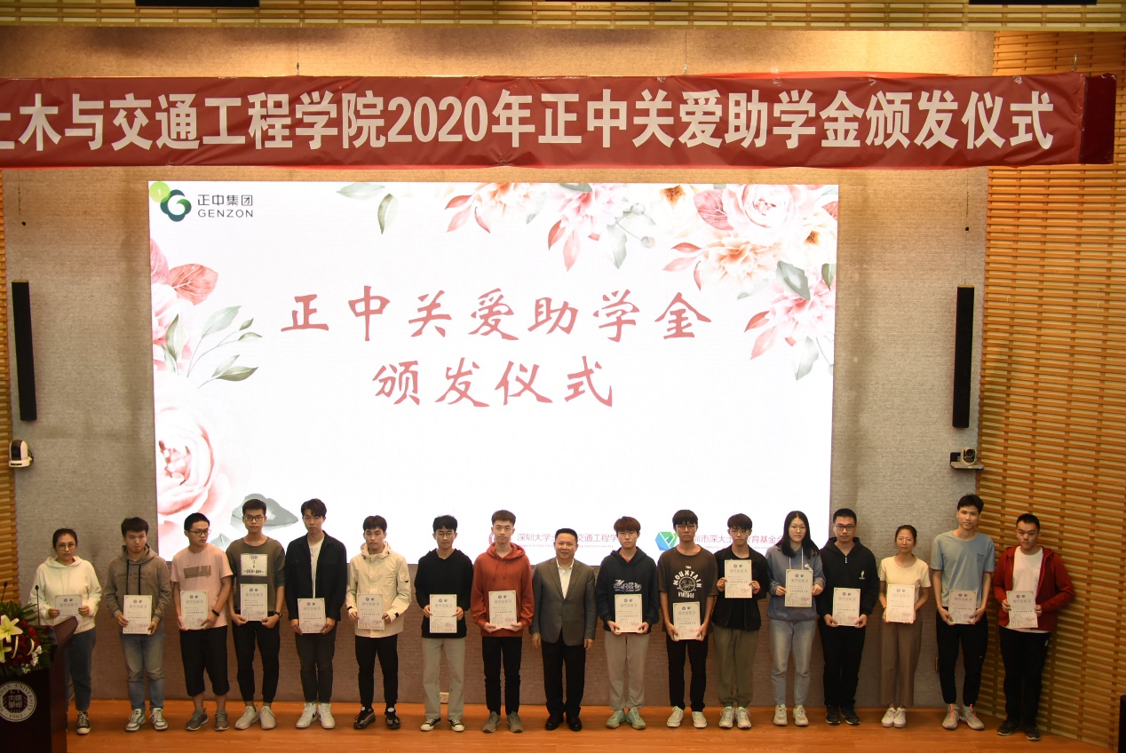 2020年11月28日下午15:00,深圳大学土木与交通工程学院2020年“正中关爱助学金”颁发仪式在汇星楼二号报告厅隆重举行。