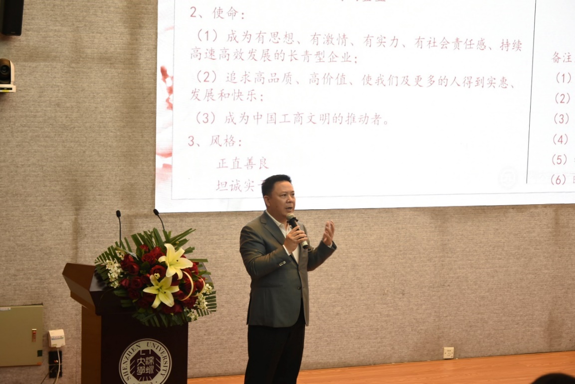 邓学勤先生上台发表了主题为“人生是一场永不停步的探寻”的讲话,分享了正中集团的企业文化,引发了同学们的深切思考。他提到:“寻找自己的目标才能保持动力,保持探寻与追求的热情;要懂得感恩和回馈社会,回馈母校”。此外,面对同学们的积极提问,邓学勤先生给予了耐心细致的解答。