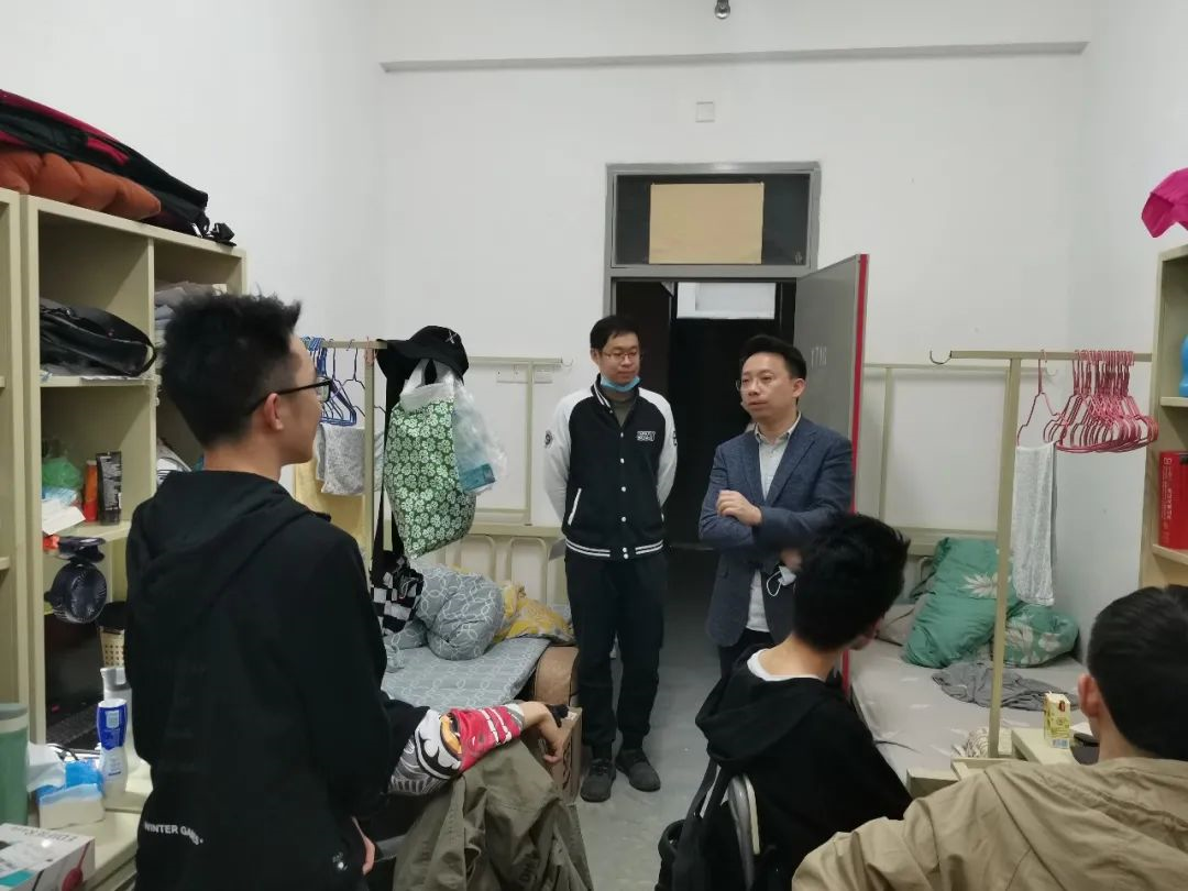 在走访过程中,学院领导与同学们亲切交谈,详细了解学生的返校情况。李伟文书记询问了学生寒假生活和学习情况,关心学生思想和心理动态,特别叮嘱毕业班同学,注意毕业设计进度,做好就业规划;目前国外疫情依然严峻,建议有出国留学计划的同学详细了解国外当地政策,做好多方面的准备。
