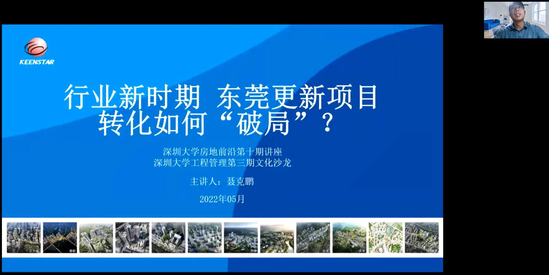 2022年5月9日,第三期工程管理文化沙龙系列活动在线上如期举行。本期工程管理文化沙龙主题讲座由李政道老师主持,主讲人是深圳市勤诚达控股集团开发总监聂克鹏先生,讲座主题为行业新时期城市更新项目转化如何“破局”—以东莞项目为例,共计56名学院师生参加了此次线上分享会。