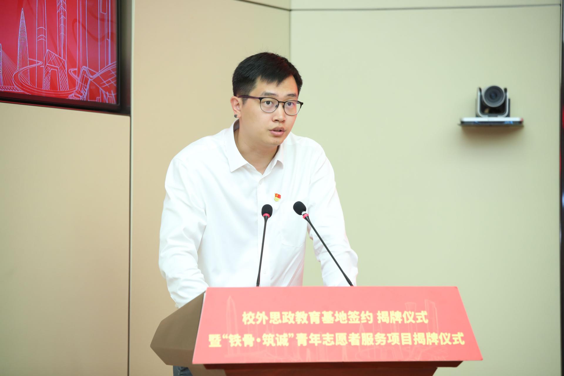 深圳大学副校长汪永成表示,深圳大学始终坚持将立德树人作为根本任务,始终坚持把思想政治教育贯穿教育教学全过程,与中建科工签约校外思政教育基地并开展“铁骨·筑诚”青年志愿服务项目对于深圳大学具有重要意义。希望通过深入的校企合作,进一步培养深大青年的社会责任感和公民意识。同时,期待校企双方能够不断提高合作水平,形成优势互补、互惠互利、相互促进、合作共赢的良好局面,携手为大湾区新时代建设、深圳“中国特色社会主义先行示范区”建设贡献力量。