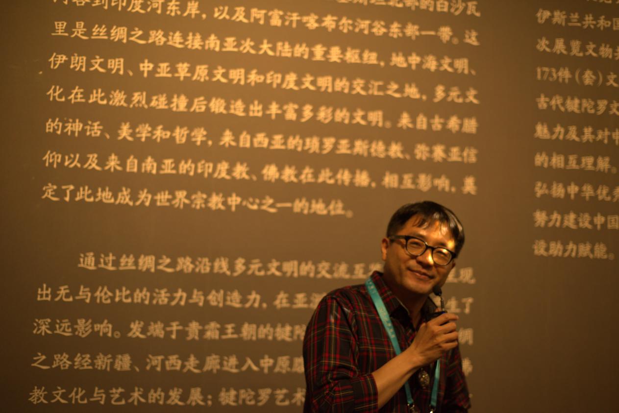 本期文化沙龙由李昇翰老师带领师生欣赏来自遥远中亚地区的《香林宝象一一犍陀罗艺术展》。犍陀罗处于亚欧大陆的心脏地带,是东亚连接中亚、西亚和地中海世界的桥梁,历来是兵家必争之地,对于在佛教的传播、发展具有重要意义。李昇翰老师提到:“犍陀罗是古丝绸之路上的交通要道,是希腊、波斯、印度等多元文明碰撞与融合的产物,它在丝绸之路沿线文明的不断交流互鉴中,焕发出活力与创造力,甚至影响到中国的云冈、龙门及敦煌石窟的表现,在佛教传入中国并逐渐本土化的过程中扮演了重要角色”。