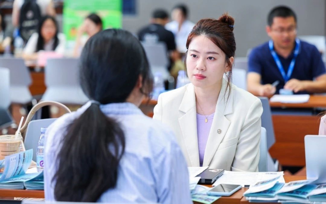 双选会现场,不少在校生手持简历,积极主动与用人单位沟通交流,深入了解企业发展、岗位要求及薪酬待遇等。