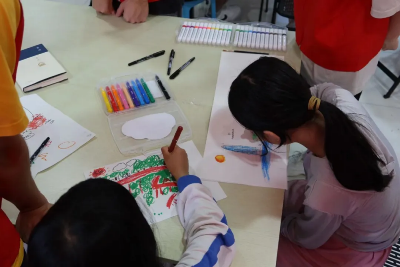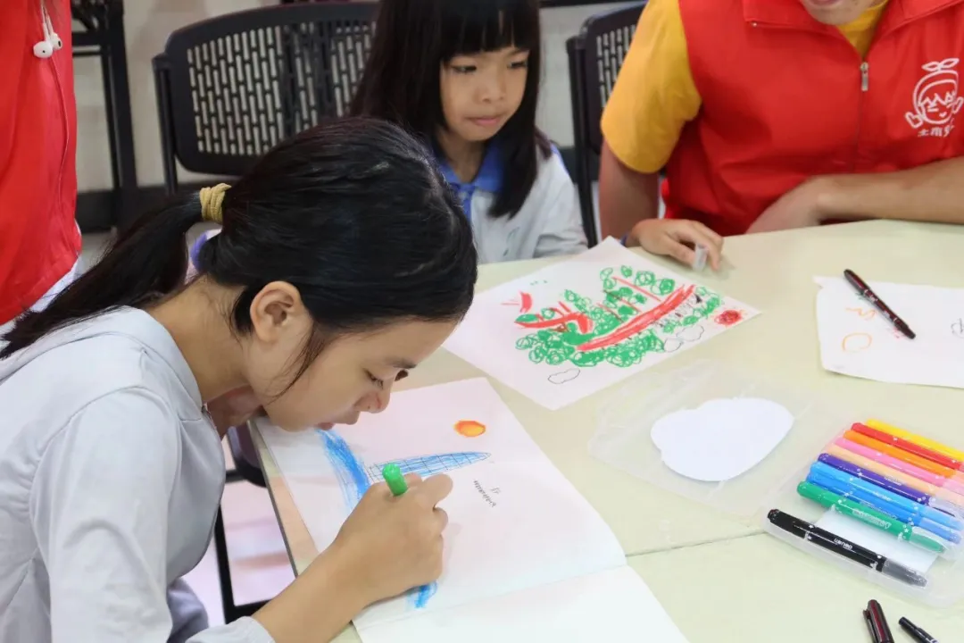志愿者让小朋友发挥自己的想象,通过彩笔绘制出他们心中的桥梁建筑。志愿者耐心引导,细心启发,让小朋友的想象力得到了充分的释放。在这里,没有固定的模式,只有自由的探索;没有标准的答案,只有独特的表达。