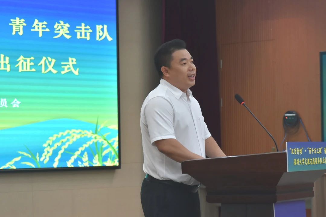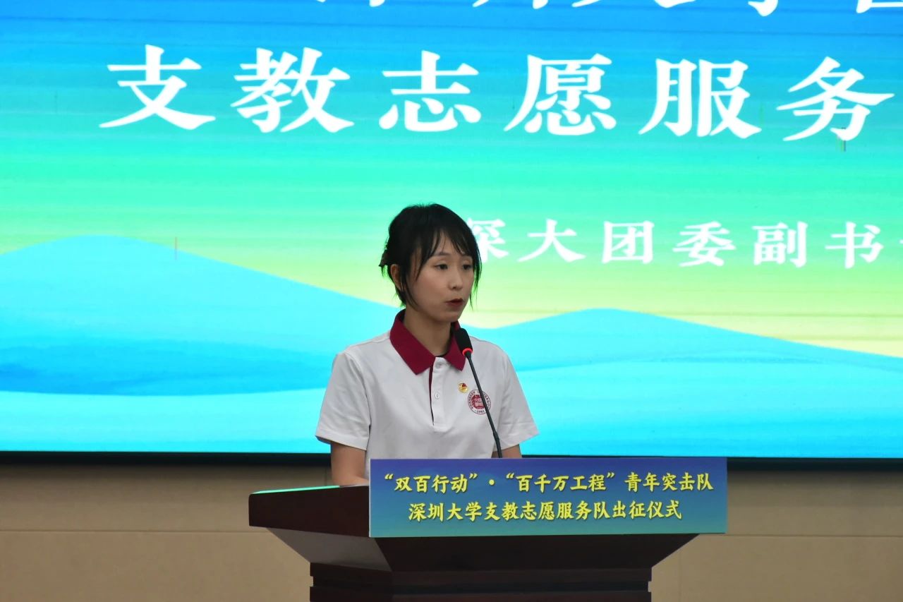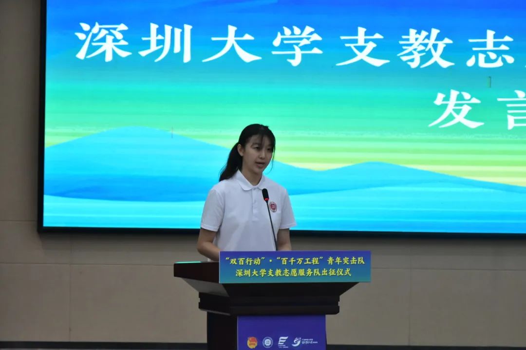 最后,我校团委张春光老师领读出征宣言,“双百行动”“百千万工程”青年突击队深圳大学支教志愿服务队出征仪式到此圆满结束。