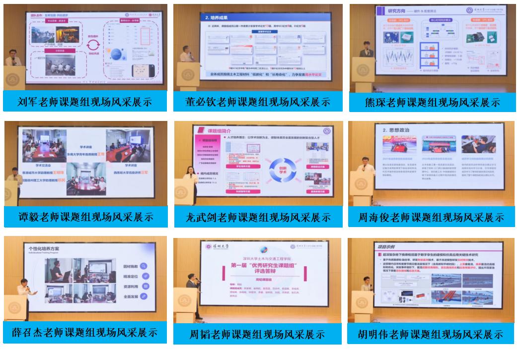 参选课题组依次展示了组内在思想政治、培养成果、学术交流、团队合作、就业创业、公共服务/社会实践、其他突出表现等方面的成果和特色: