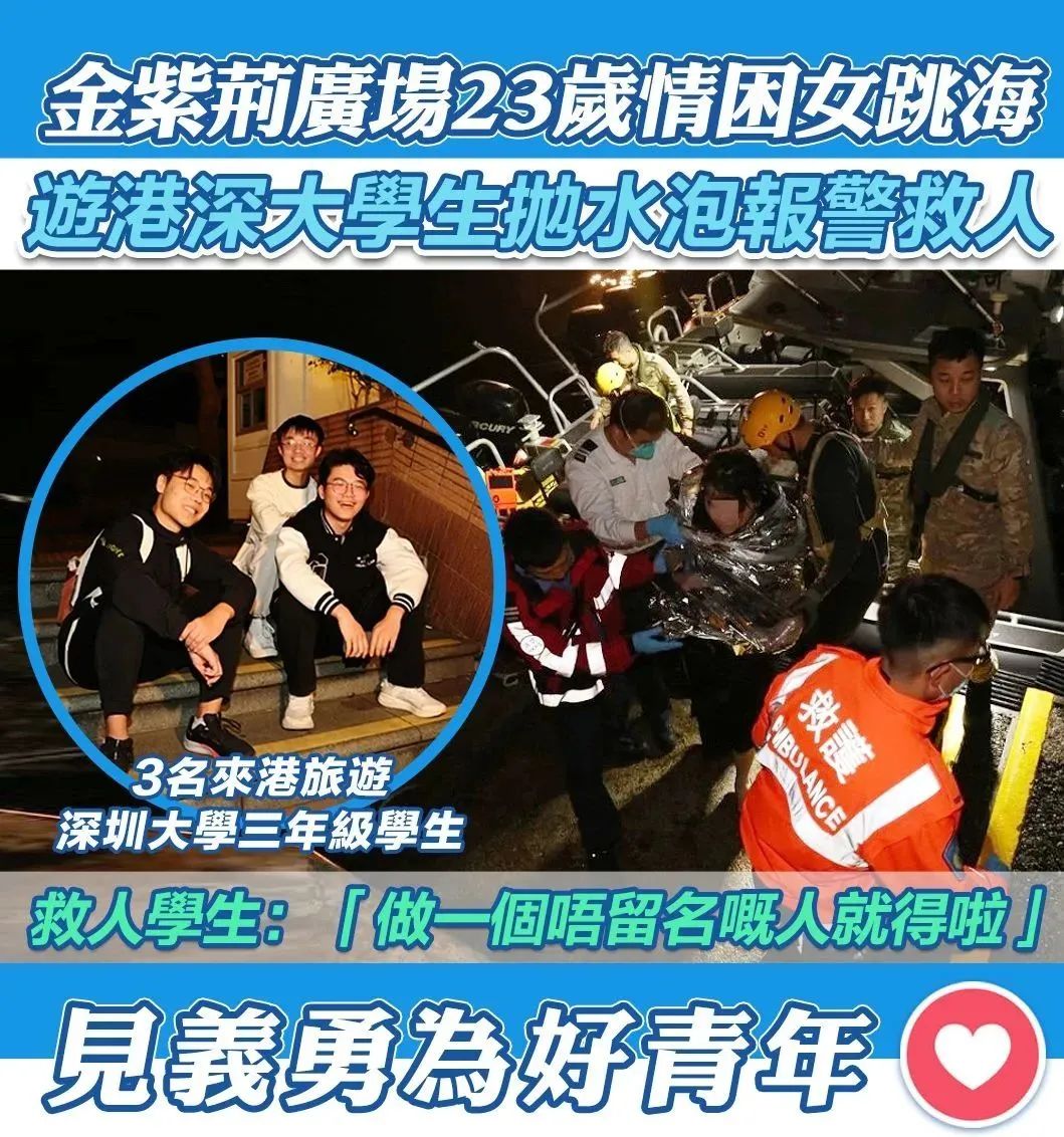 ST: 好市民獎2024|深圳大學3男生遊港 合力救起墮海女:大家多做力所能及的義舉!