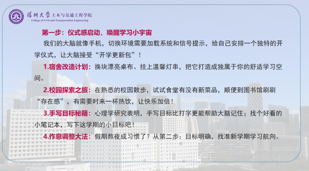 一是可以通过启动仪式感,唤醒学习动力。如宿舍改造计划、校园探索之旅、手写目标秘籍、作息调整大法。