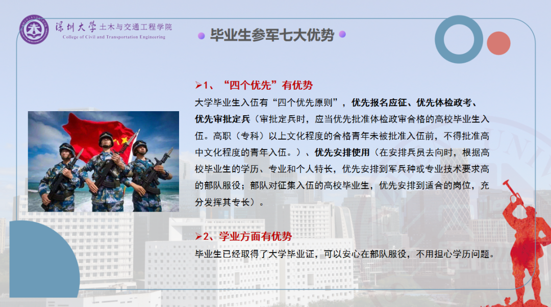 同时,还介绍了直招军官政策。直招军官是直接选拔招录普通高等学校应届毕业生,主要选拔引进部队建设急需紧缺人才,补充到现役军官特别是专业技术军官岗位,为军队注入新鲜血液,也为高校毕业生提供了多样化的职业发展路径,是同学们毕业就业时值得考虑和选择的就业路径。