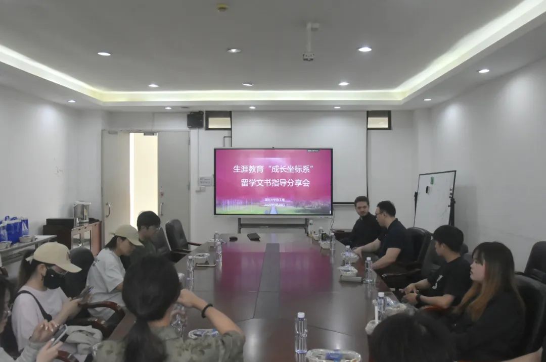 3月28日下午,我院在致工楼B506会议室开展了生涯教育“成长坐标系”之留学文书指导分享会。分享会特别邀请了学院副院长郭峻、助理教授Kato Bence担任主讲嘉宾,吸引了10余名同学参与。