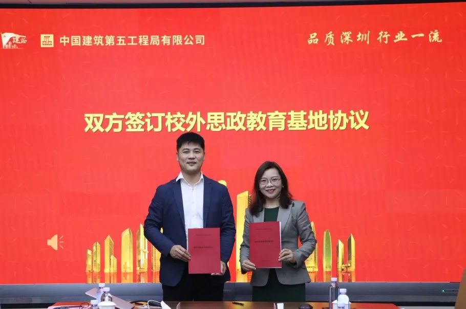 此次签约促成土木与交通工程学院建立第二个“校外思政教育基地”。自2023年6月与中建科工集团党委合作建立第一个“校外思政教育基地”以来,双方共同孵化设立了“铁骨·筑诚”青年志愿服务项目,服务深圳市民五千余人,开展了一系列互利共赢的校企共建活动,签约以来,学院入职中建科工集团毕业生超20人。
