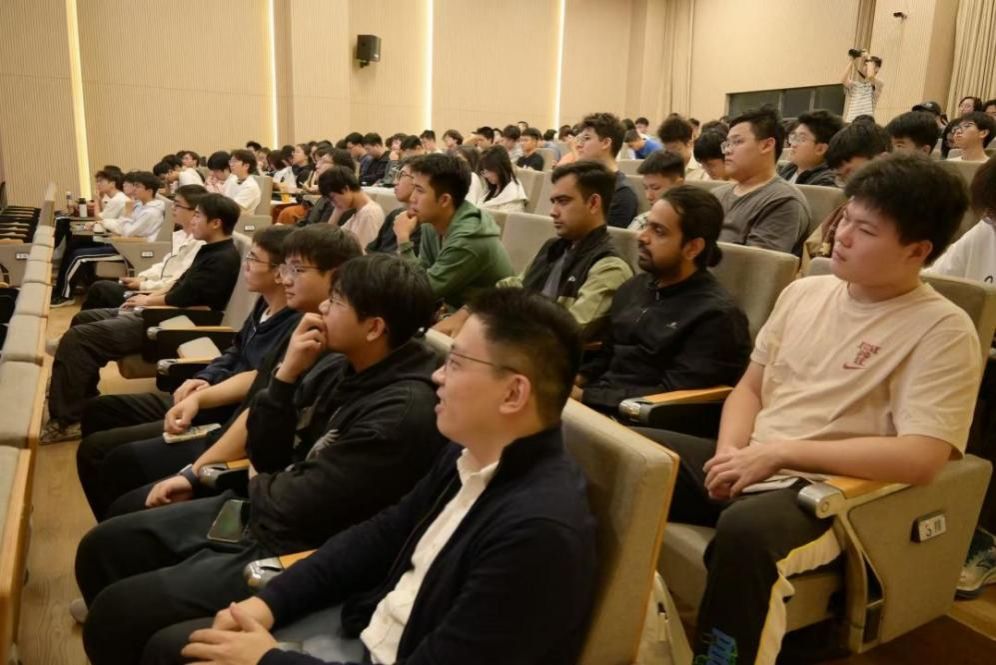 最后的交流环节中,同学们踊跃提问,内容涉及专业深造、学科竞赛、前沿研究方向及人生规划等多个方面。殷院士结合自身经历与行业洞察逐一解答,现场互动气氛热烈。