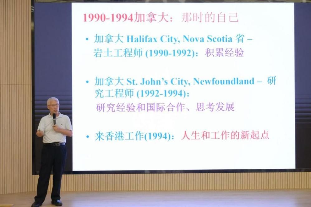 讲座伊始,殷建华院士回首来时路,讲述了个人经历与行业变迁。结合自身跨越中国、加拿大、香港等多地的学习、咨询与科研教学经历,生动回顾了国内外土木工程行业几十年来的发展周期与趋势变迁。他从1977年高考的人生转折谈起,随后分享了公派留学海外深造及返回香港工作的历程,进而介绍了参与香港汀九斜拉桥等重大工程的实践经验。通过一系列亲身经历,殷院士以国际视野分析了行业发展的规律,为新生勾勒出一幅土木工程与国家发展、时代变迁同频共振的生动图景。这些真实案例让同学们对行业全貌有了更直观的认识。