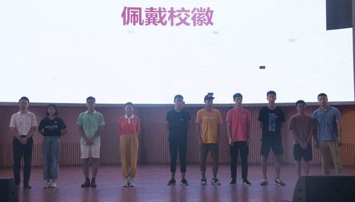 紧接着,执行院长龙武剑教授与副院长邹亮副教授一同上台,为新生代表戴上校徽,充分表明了学院对新生的期望。