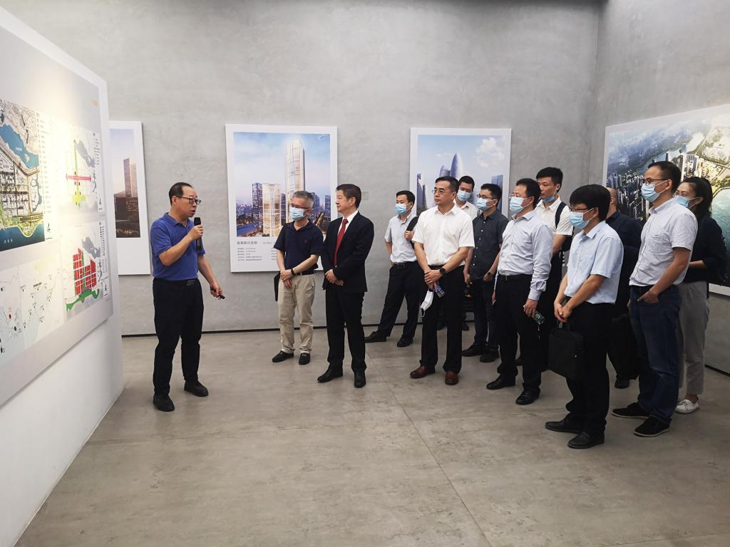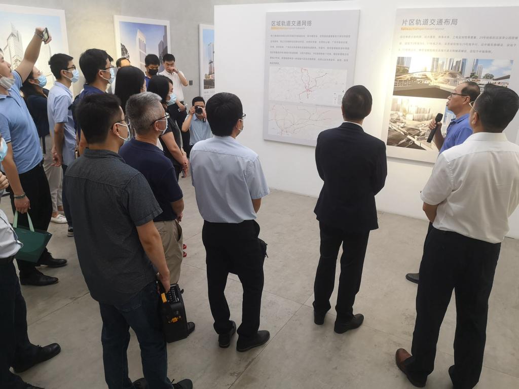 陈湘生院士一行首先参观了超总基地展厅,苏峰处长向深圳大学来宾详细介绍了超总基地项目的整体规划设计、建筑方案、交通规划等情况,并就片区地下空间和市政规划的核心理念、总体布局、先进技术、未来科技运用情况等进行了重点讲解。