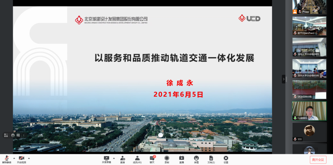 本次活动由北京城建设计发展集团、深圳大学联合深圳市地铁集团有限公司共同组织;长沙市轨道交通发展研究会、福州地铁集团有限公司、武汉大学、西北工业大学、西南交通大学深圳分院、山东大学深圳分院等多个单位组织共同参与了本次活动。本次活动在采取“云交流”的同时在北京和深圳设立了多个分会场,参与活动人数达150余人,活动由大赛筹备办秘书长、北京城建设计发展集团人力资源部部长伍丹主持。