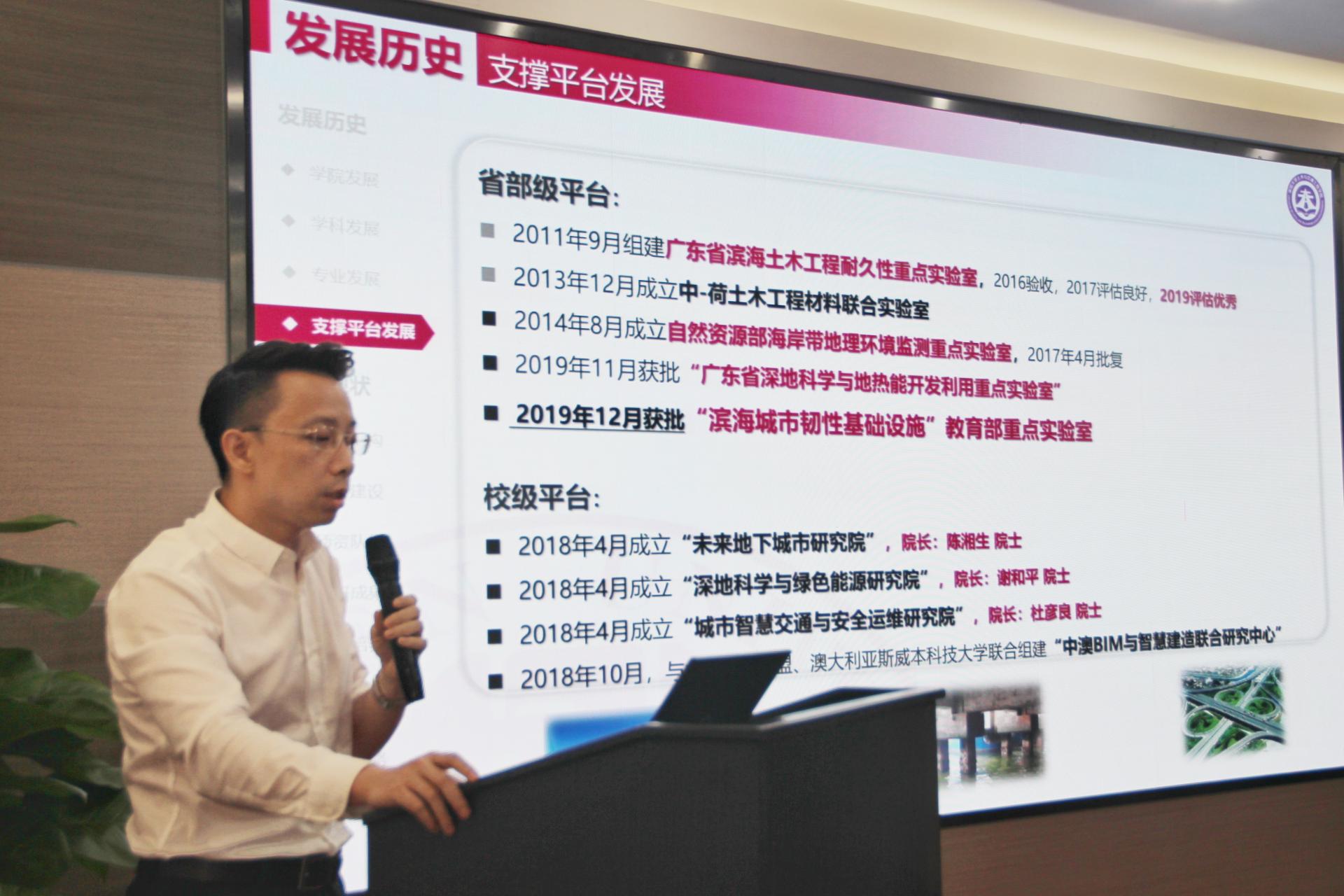 土木与交通工程学院执行院长龙武剑对学院总体情况进行介绍,围绕学院的发展历史、发展现状和未来规划三个方面,重点介绍学院师资队伍、人才培养、科研团队及主要科研成果。