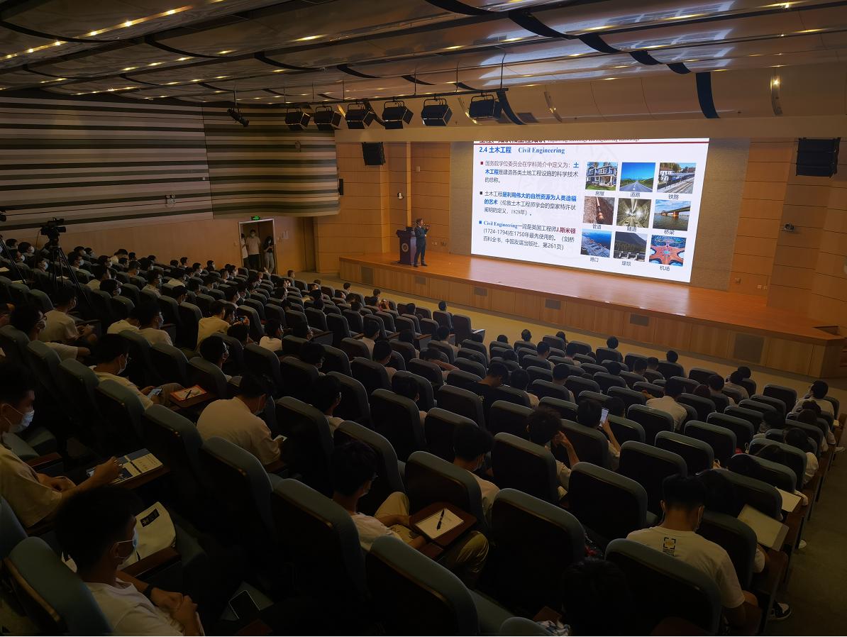 2021年9月29日晚19:00,在深圳大学粤海校区汇星楼一、二号报告厅,深圳大学土木与交通工程学院院长、中国工程院院士陈湘生教授为学院全体2021级本科生和研究生作了题为《大土木工程概论——我们从何而来,向何处去?大土木工程人能做什么?》的报告,报告由土木与交通工程学院副院长隋莉莉教授主持,学院党委书记李伟文、执行院长龙武剑、党委副书记陈碧霞、副院长杨磊等学院领导和教师代表、全体2021级新生共300多名师生在现场参加了此次报告。报告还通过深圳大学bilibili网站官方账号进行全程同步直播,全国3.9万余名观众同时通过网络在线观看。两个小时的报告时间里,听众们在陈湘生院士的带领下,从工程技术出发,跨越工程科学,走向工程哲学。