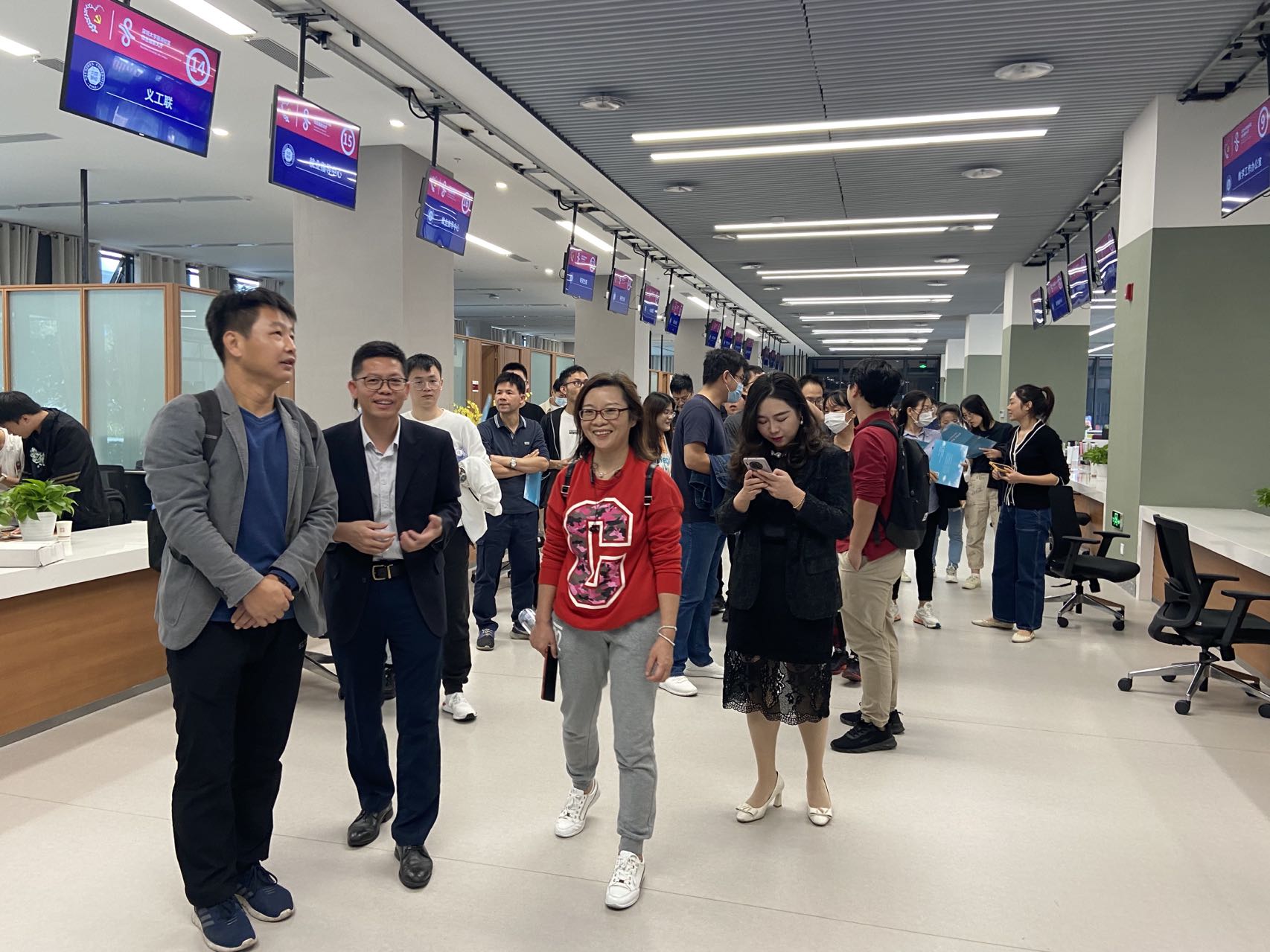 参访过程中阮彬主任依次向参访教工详细介绍了综合行政服务大厅、教师共享办公空间、四方楼以及经管法学院所在的明德楼、明理楼及明律楼。