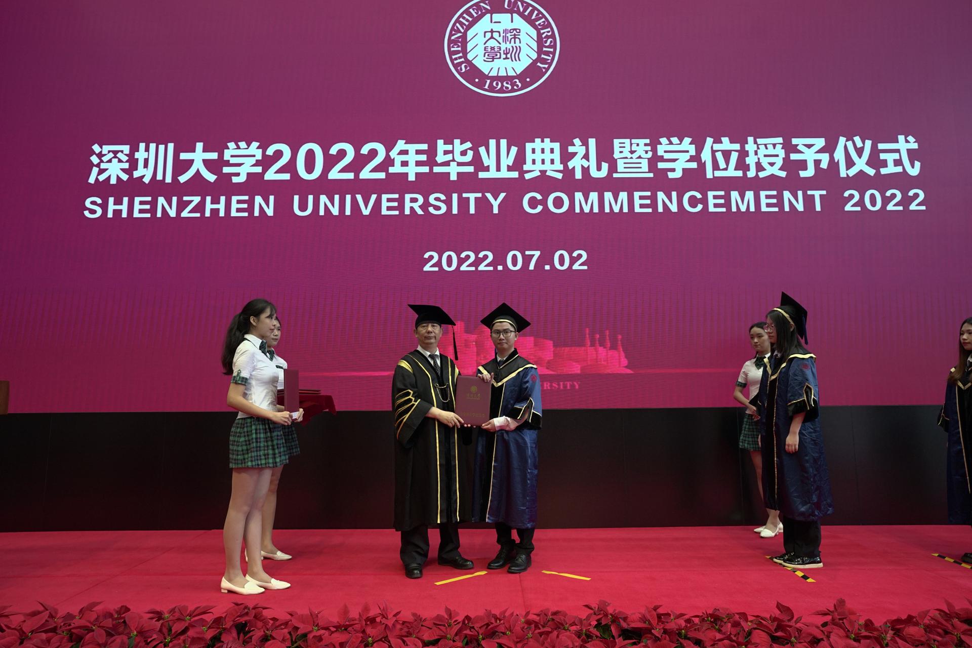 7月2日深圳大学2022年毕业典礼在校友广场等地以“线上+线下”、“主会场+分会场”相结合形式的举行,校党委书记李清泉、校长毛军发等校领导亲临毕业典礼现场,我院院长陈湘生院士也亲自到场参会。我院江琳、许少鑫和刘细妙三位同学作为学生代表在毕业典礼现场参加了此次毕业典礼和学位授予仪式。